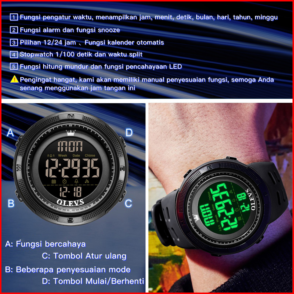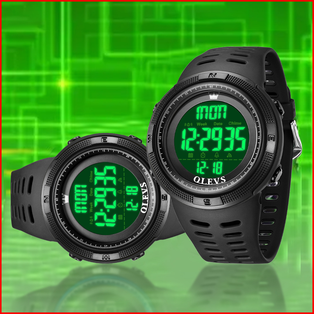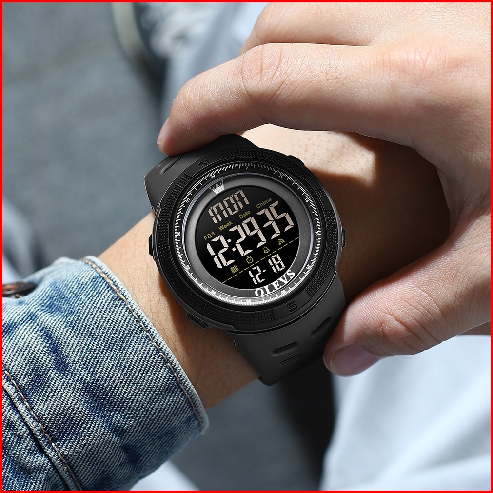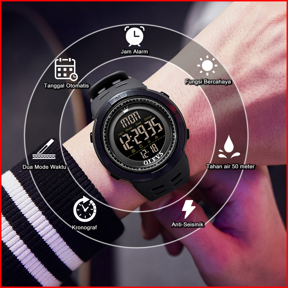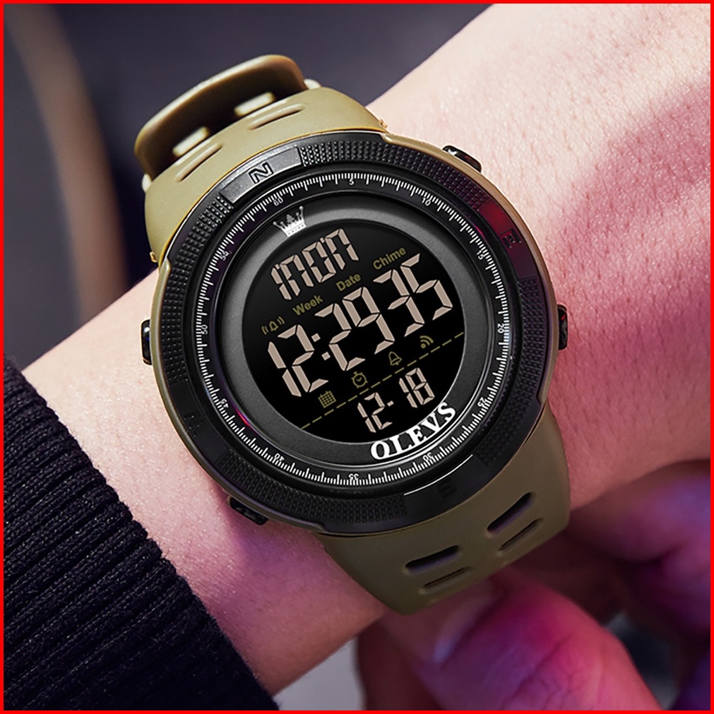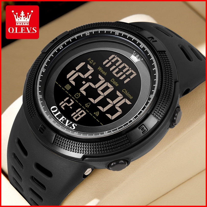 Olevs Jam Tangan Digital Pria Original Anti Air 50 Meter Multifungsi Led Alarm Men Watch Hitam