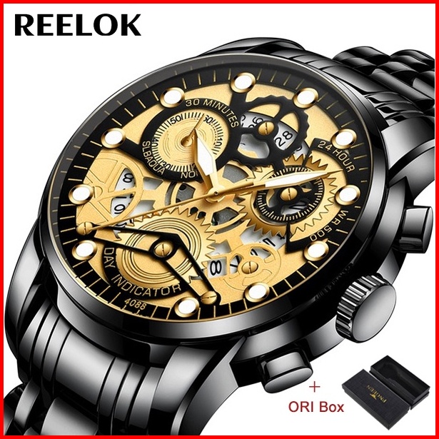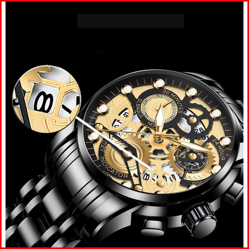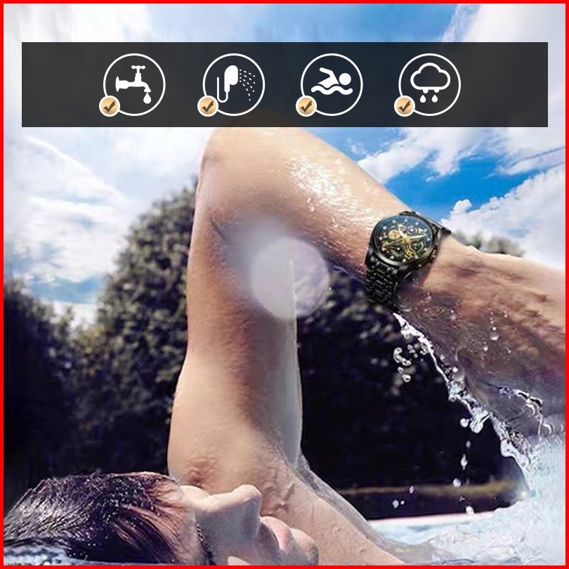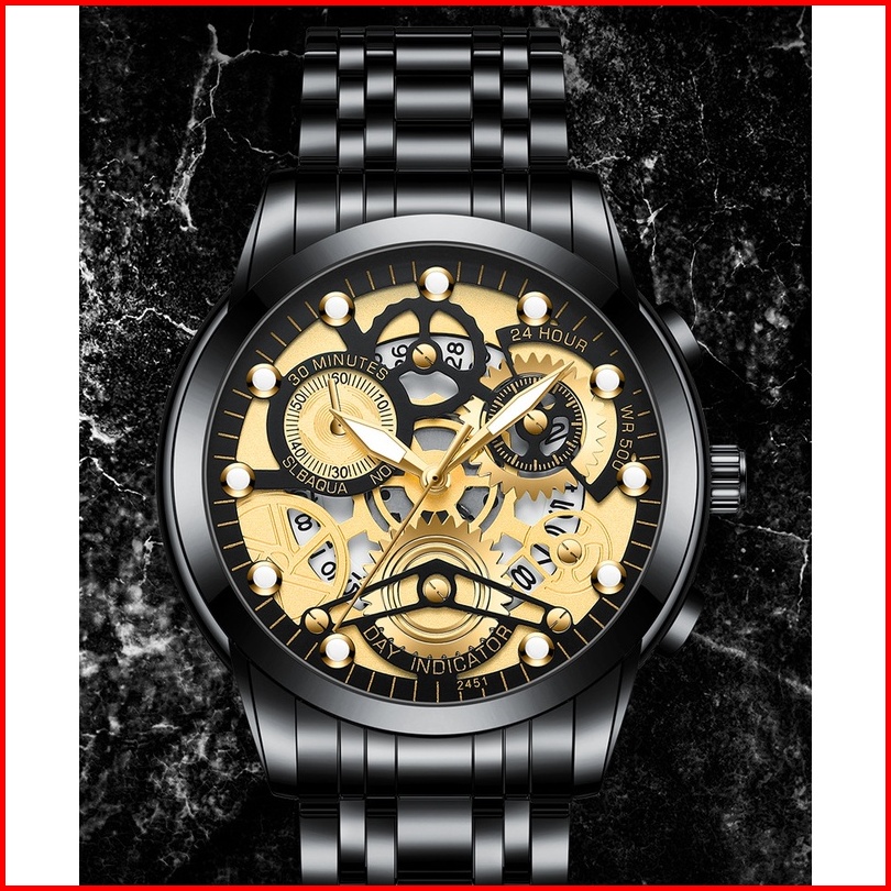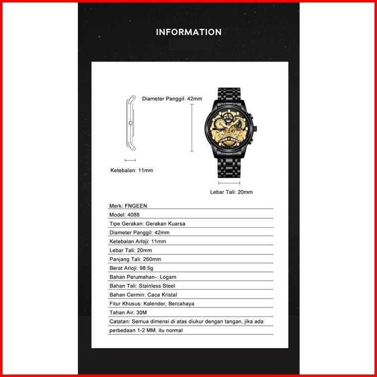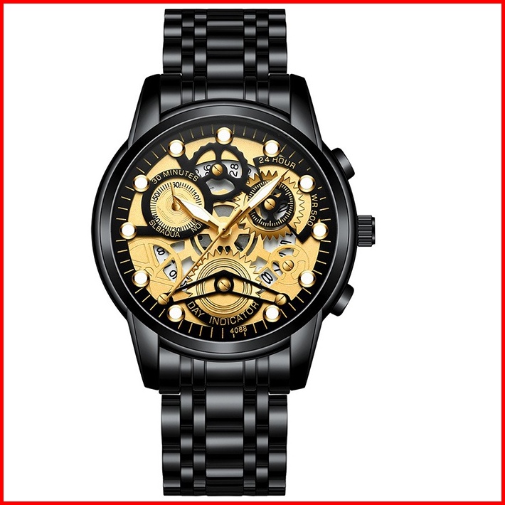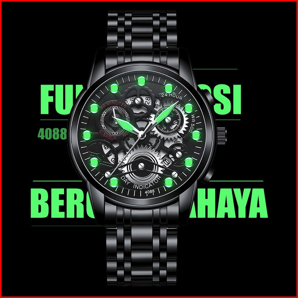 Fngeen 4088 Jam Tangan Pria Original Anti Air Luxury Stainless Steel Desain Berongga-ukiran Fashion Quartz Bercahaya Wat