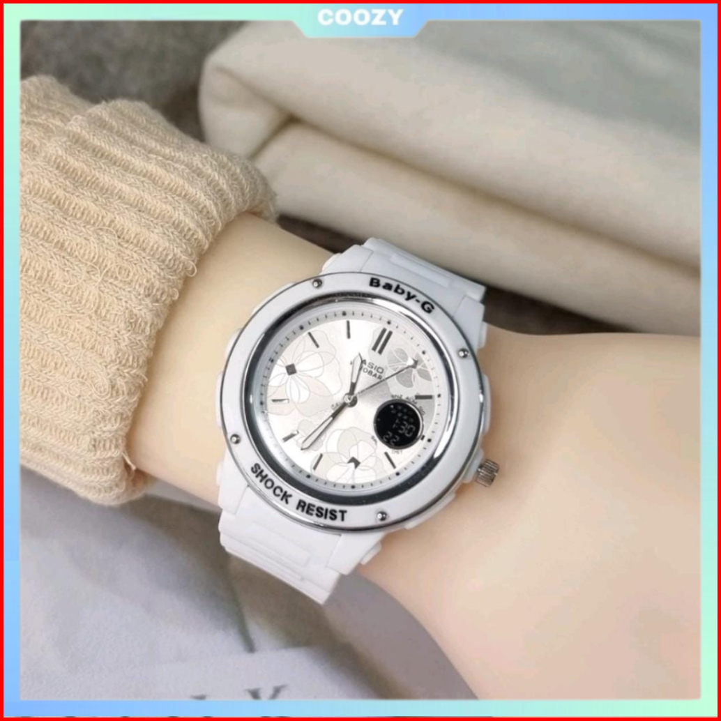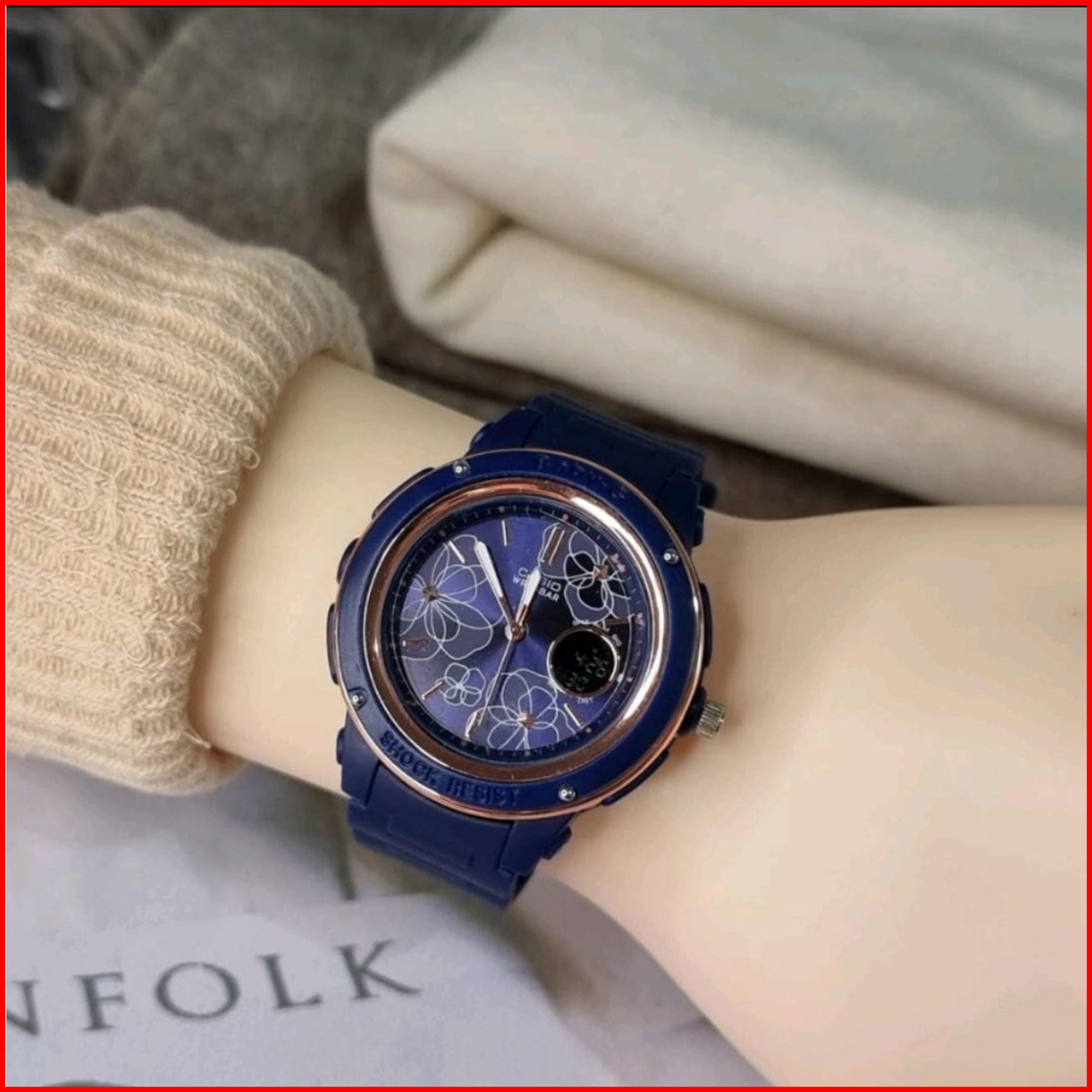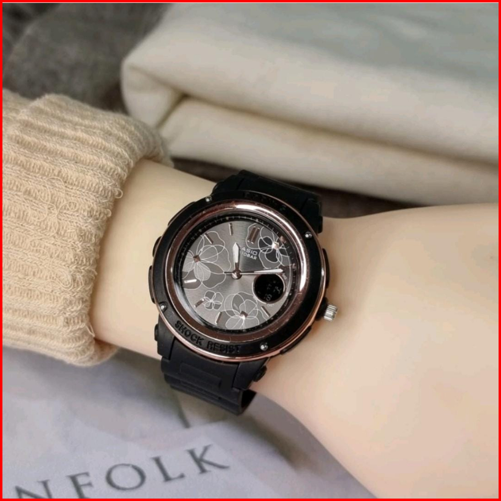 Jam Tangan Wanita Digital Analog Dual Time Rubber Anti Air Sporty