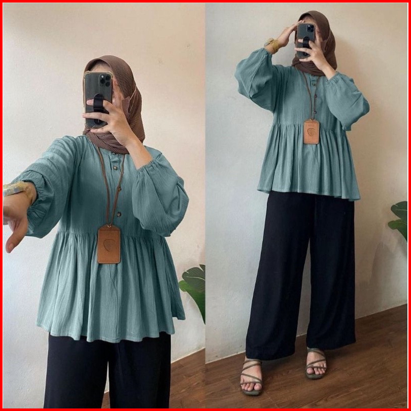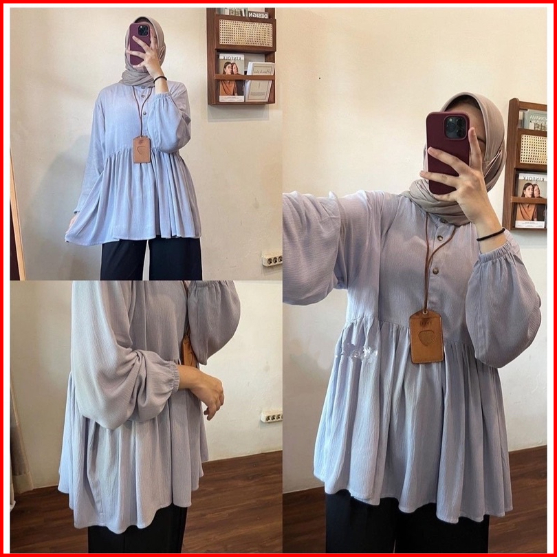 Kalinda Blouse Wanita Korean Style Model Kerut Depan Baju Atasan Polos Wanita Ruffle Terbaru