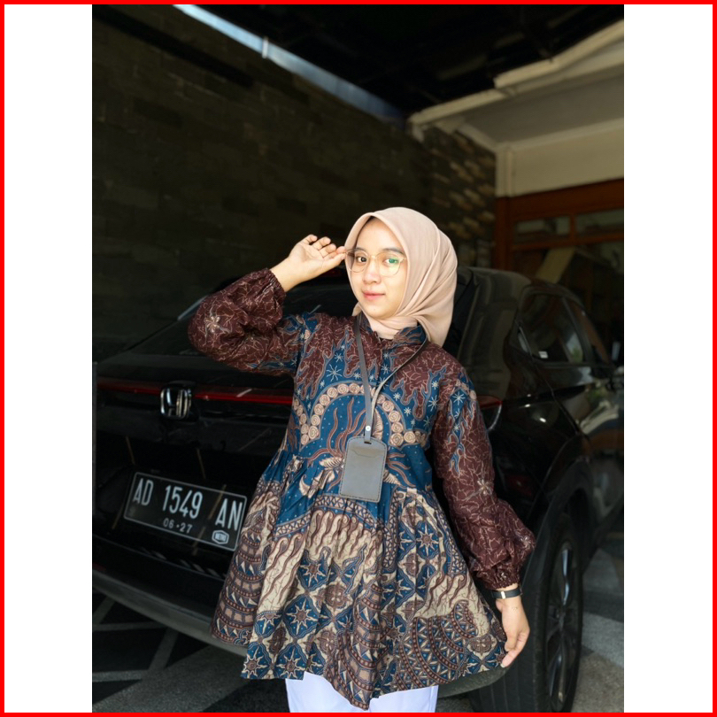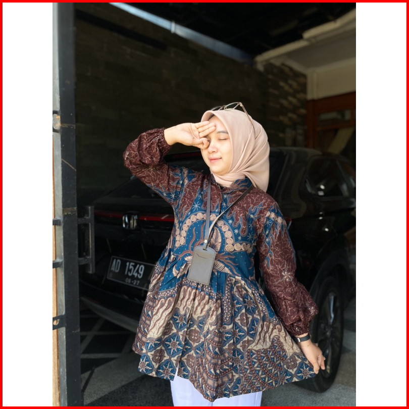 Blouse Medina Burgundy Viral Batik Atasan Wanita Kerja Outfit Terbaru