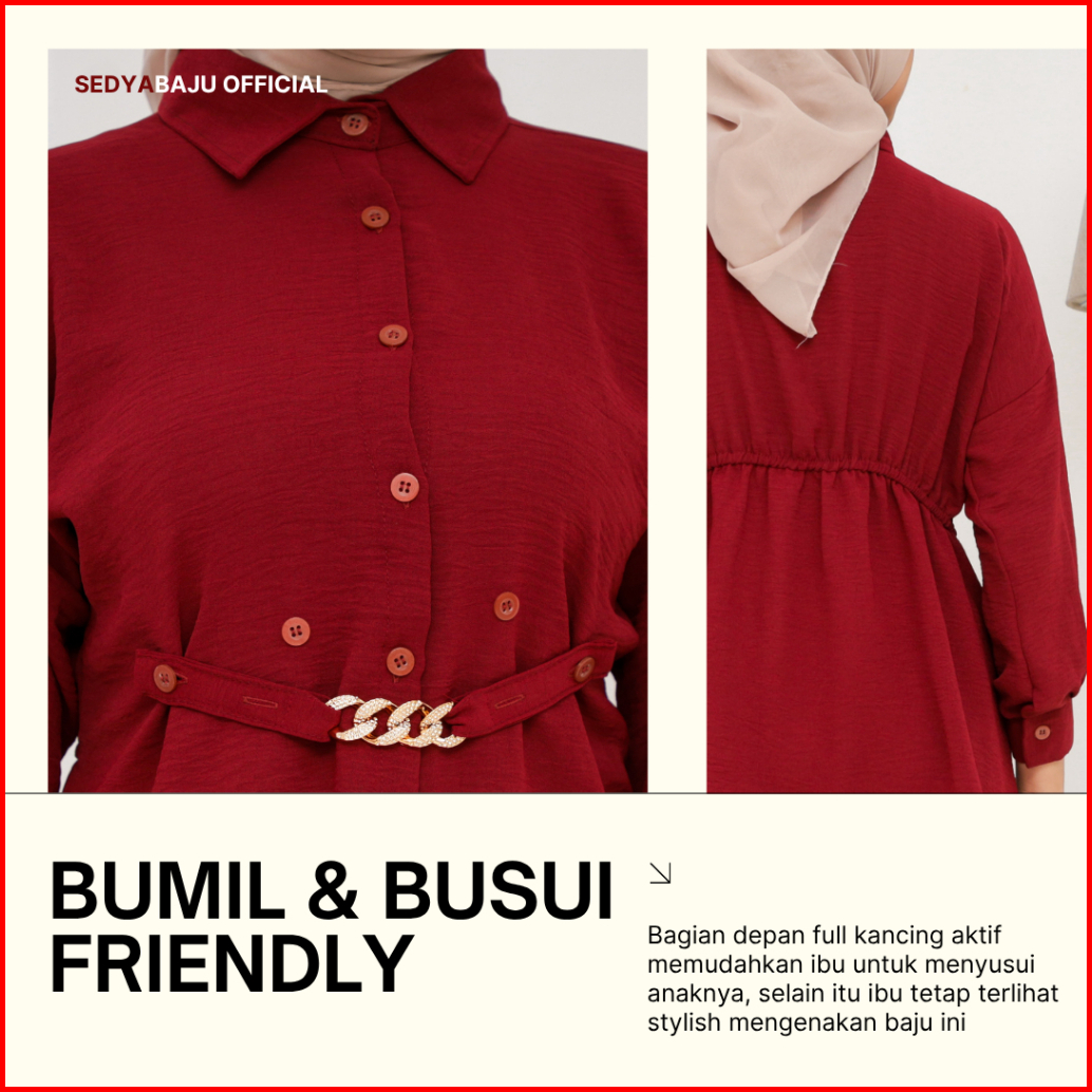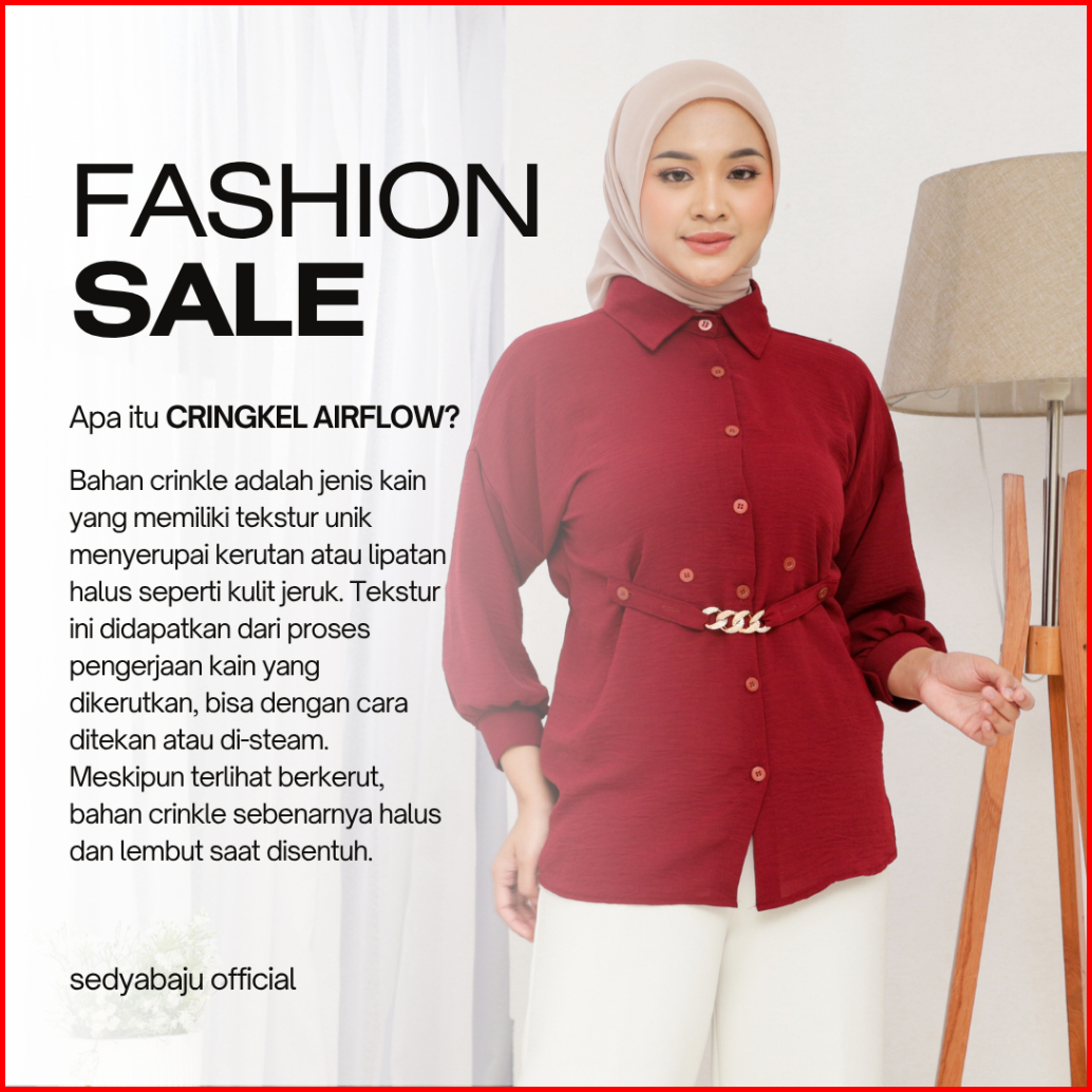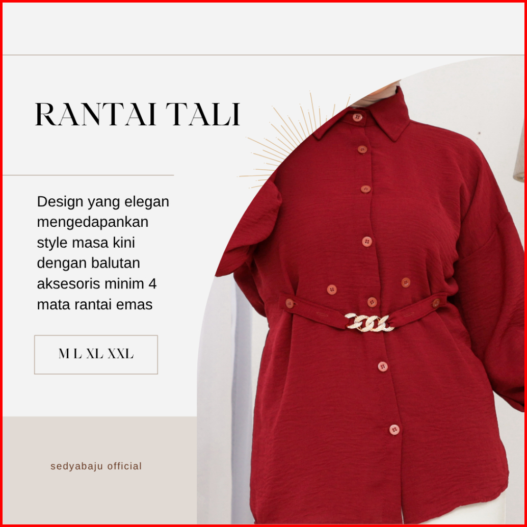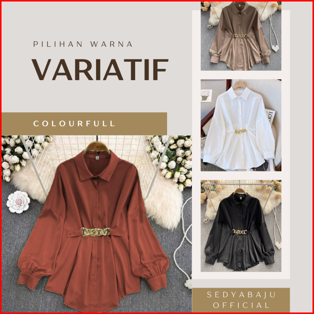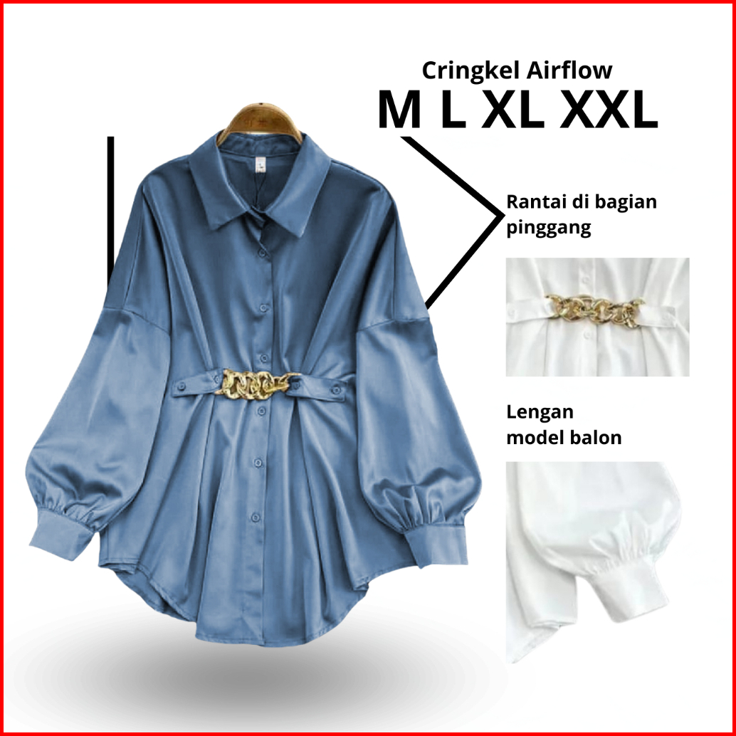 Kemeja Wanita Polos Motif Rantai Lengan Balon Blouse Atasan Full Kancing Korean Style Oversize Jumbo