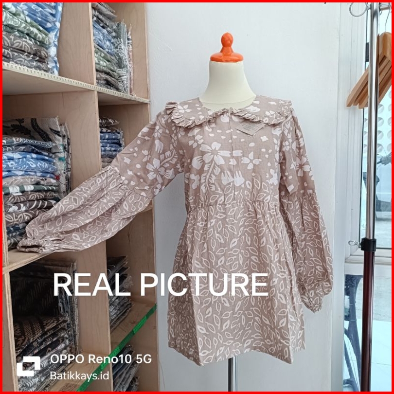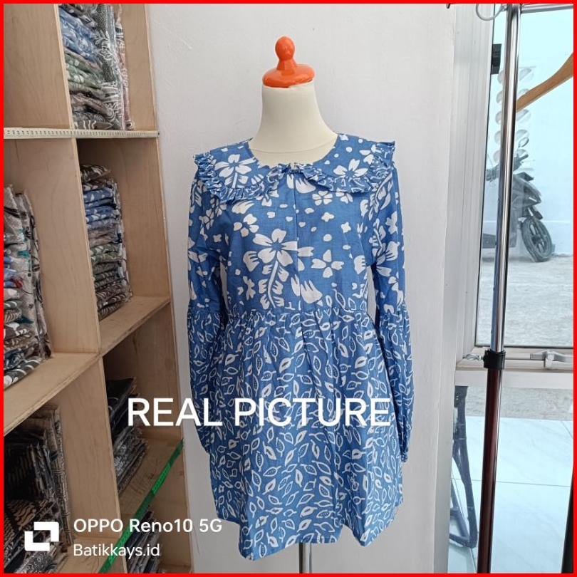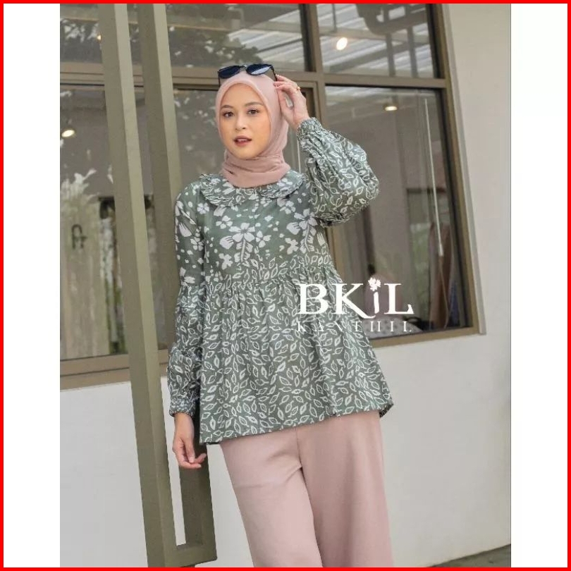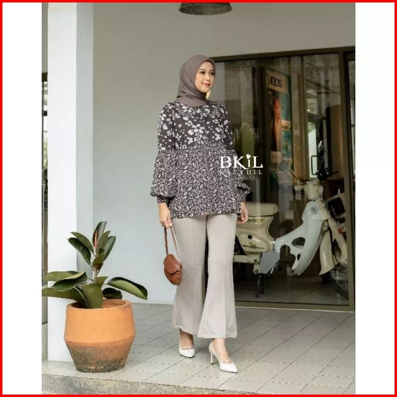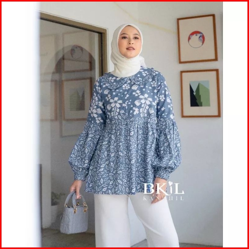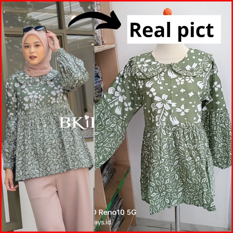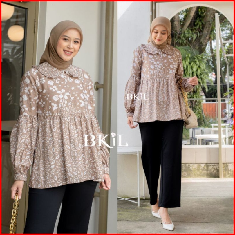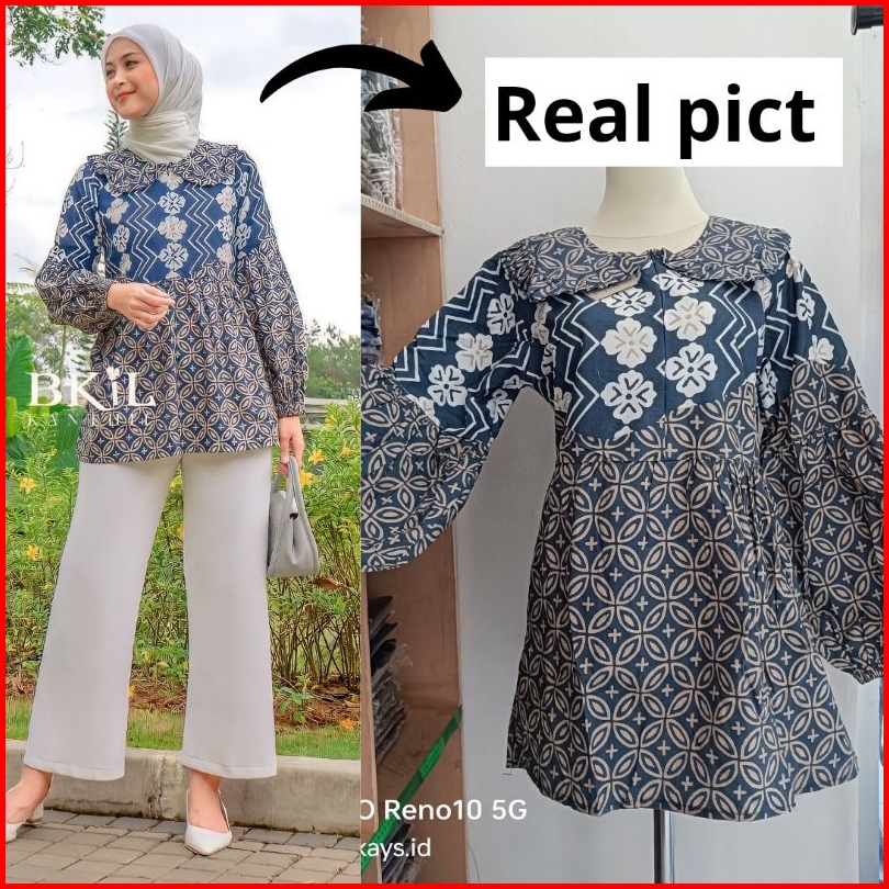 Atasan Wanita Blouse Batik Kerja Modern Lengan Balon Kerah Kolar Katun M L Xl Xxl
