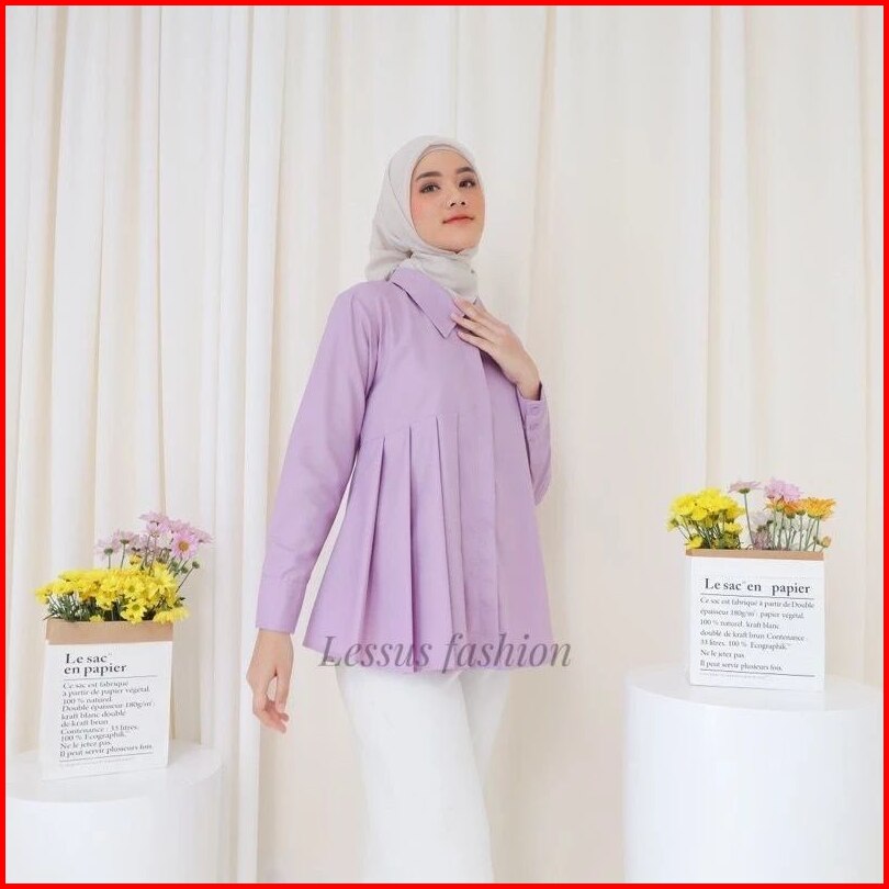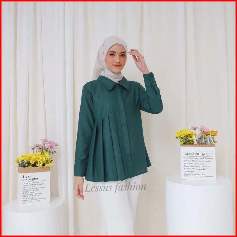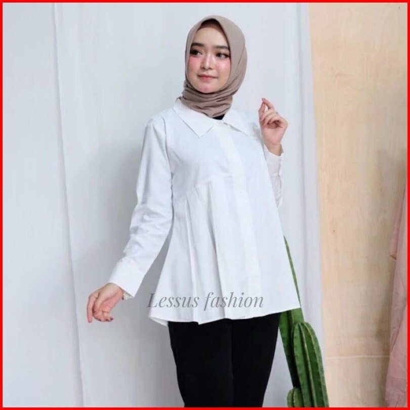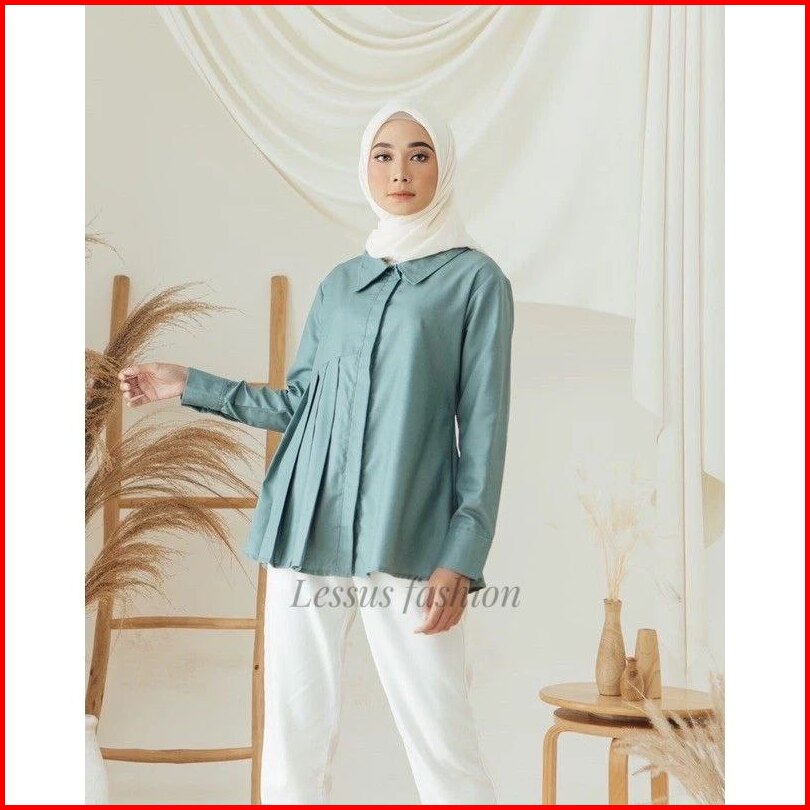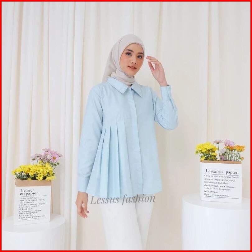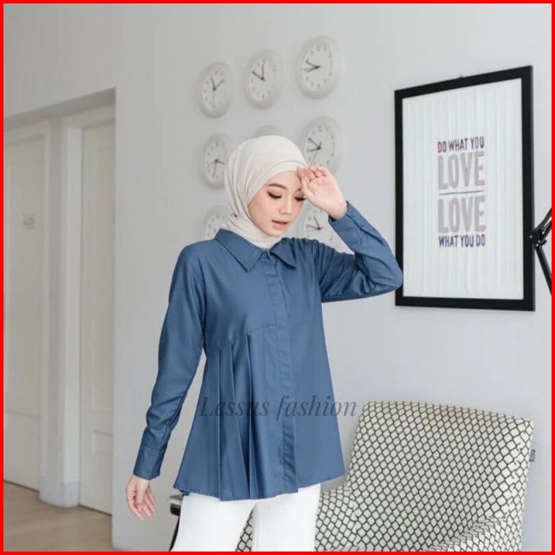 Blouse Syakila Kemeja Polos Wanita Dengan Ukuran Jumbo Basic Blouse Wanita Muslim Full Kancing