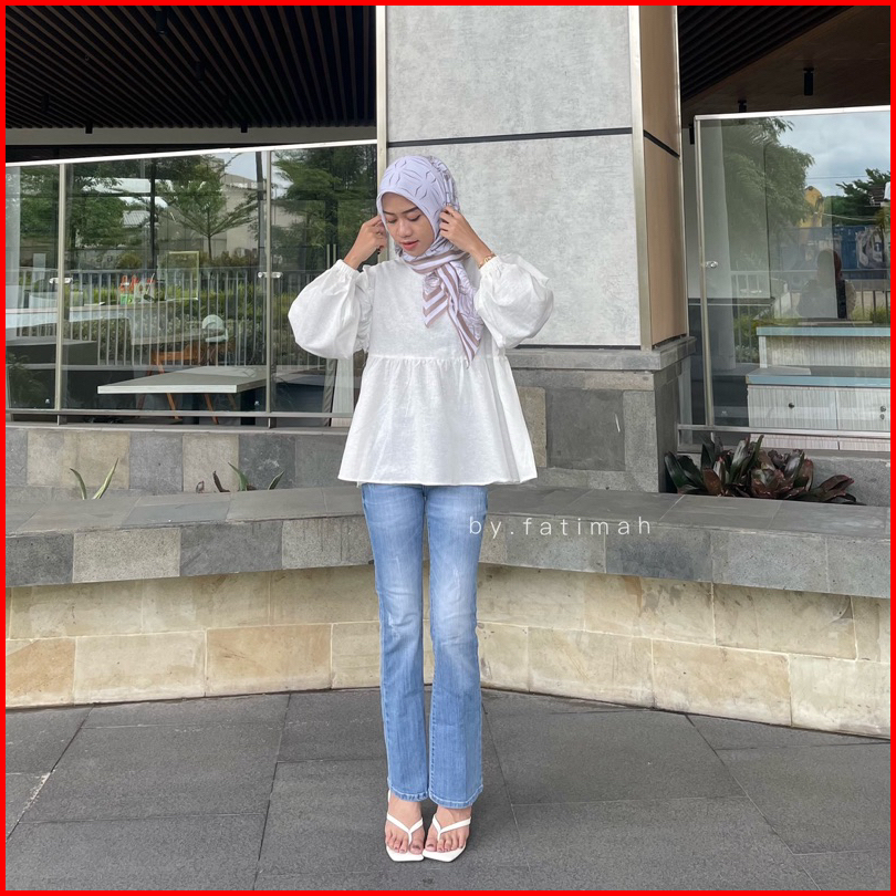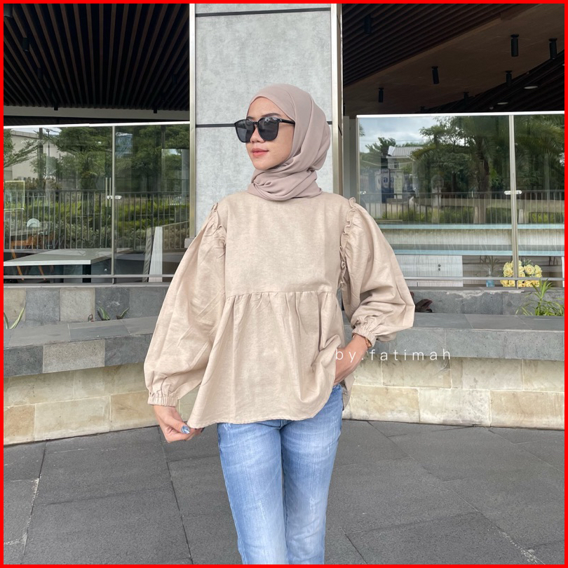 Alika Blouse Puffy Mini Ruffle Korean - Baju Atasan Wanita Terbaru Kekinian By Fatimah