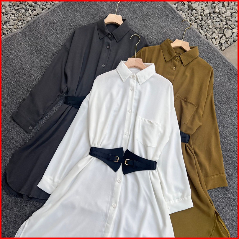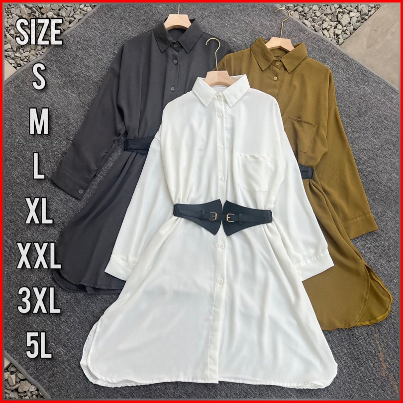 Reeka Shirt Free Belt - Ukuran S M L Xl Xxl 2xl 5l - Kemeja Wanita Jumbo - Kemeja Kantor Wanita