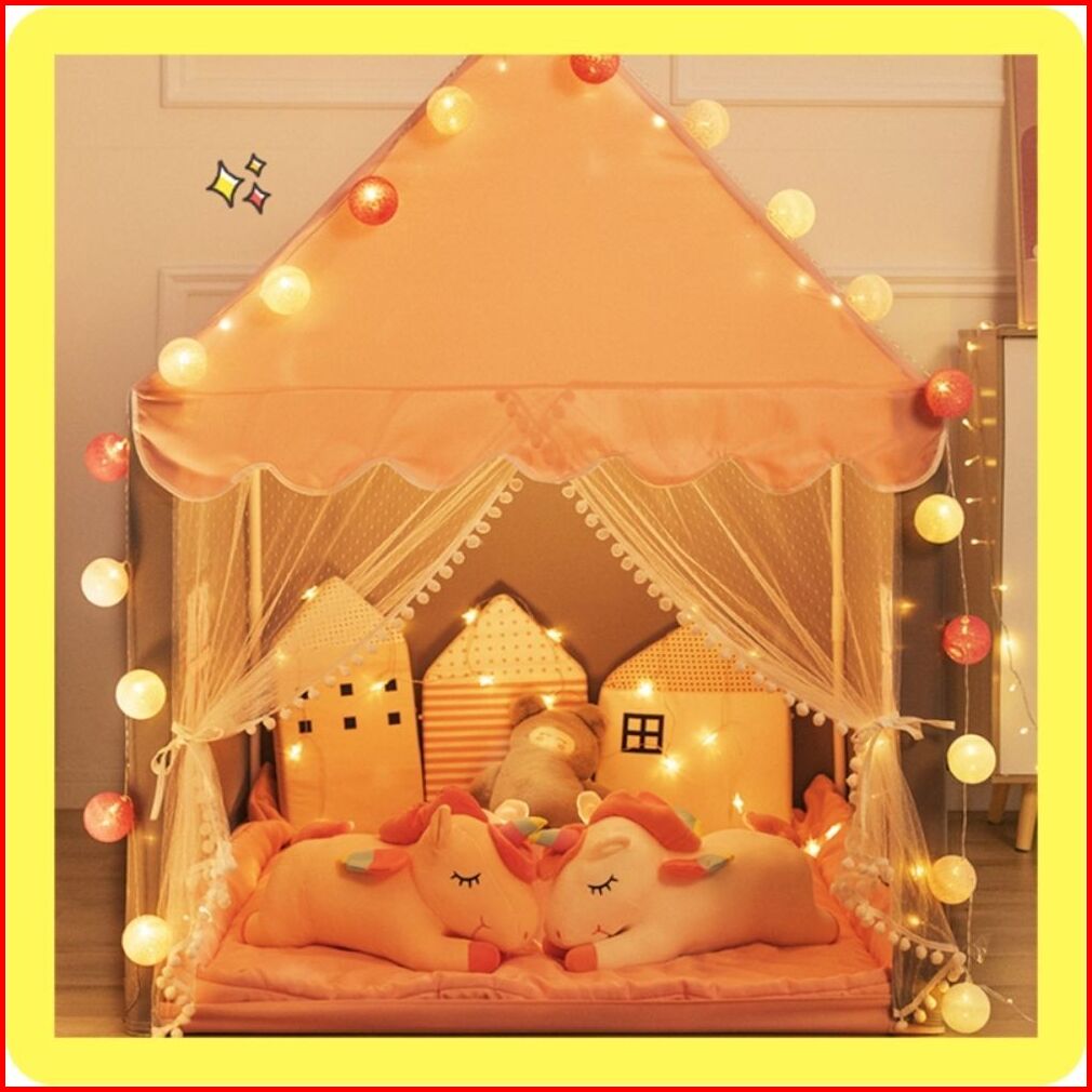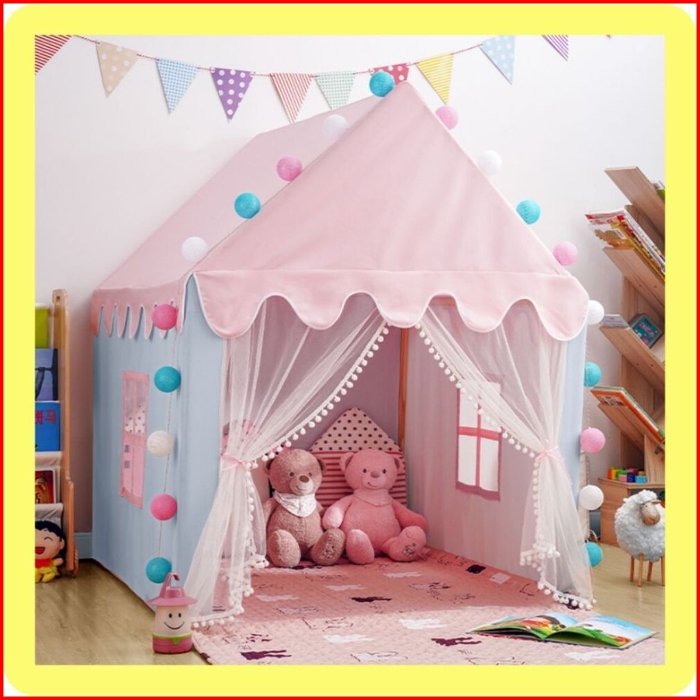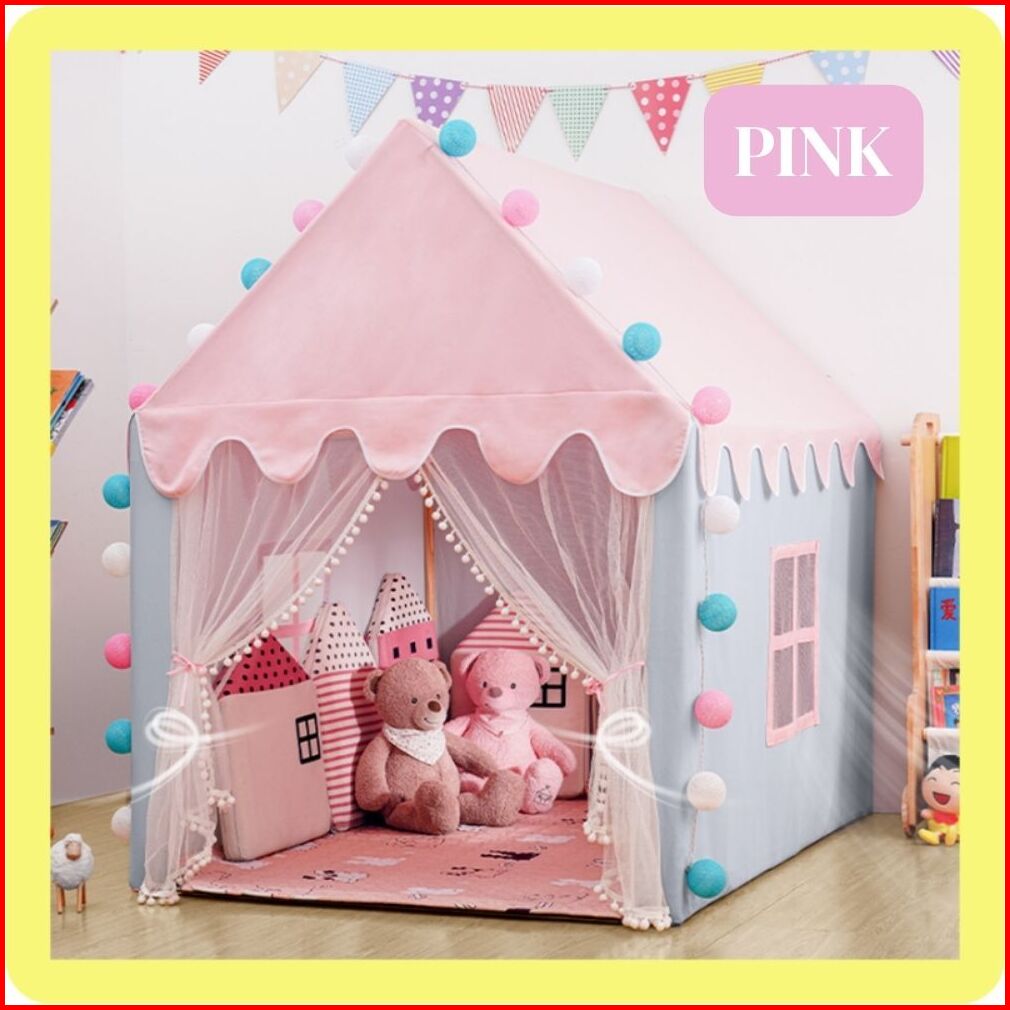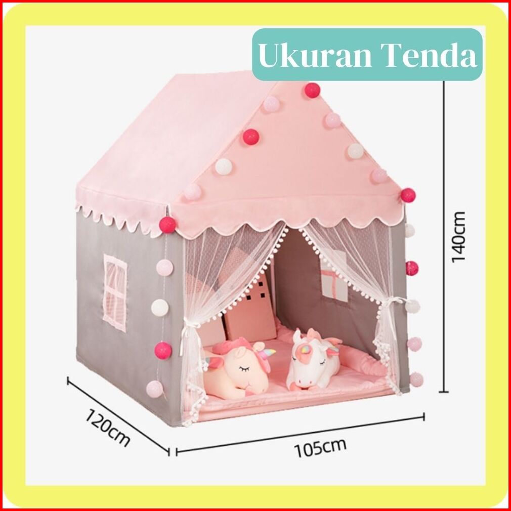Tenda Bermain Anak Jumbo Model Rumah Dekorasi Portable Dengan Varian Warna Pink Biru Dan Kuning