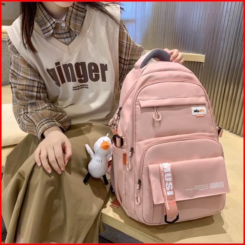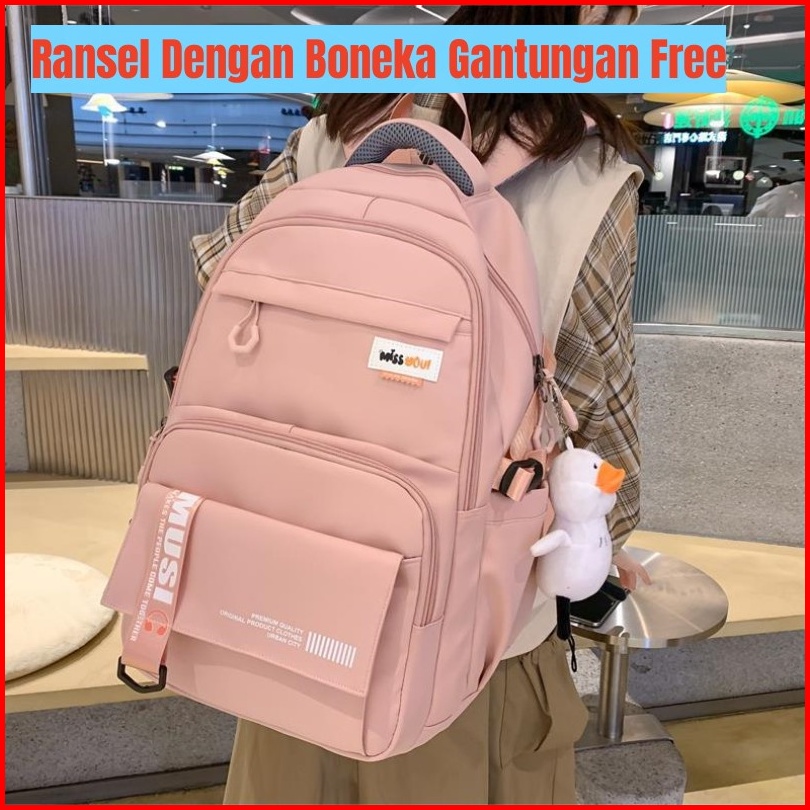 Tas Sekolah Anak Smp Sma Dengan Boneka Gantungan Free Import Premium Quality Backpack Ransel Anak Perempuan 46 31 24cm
