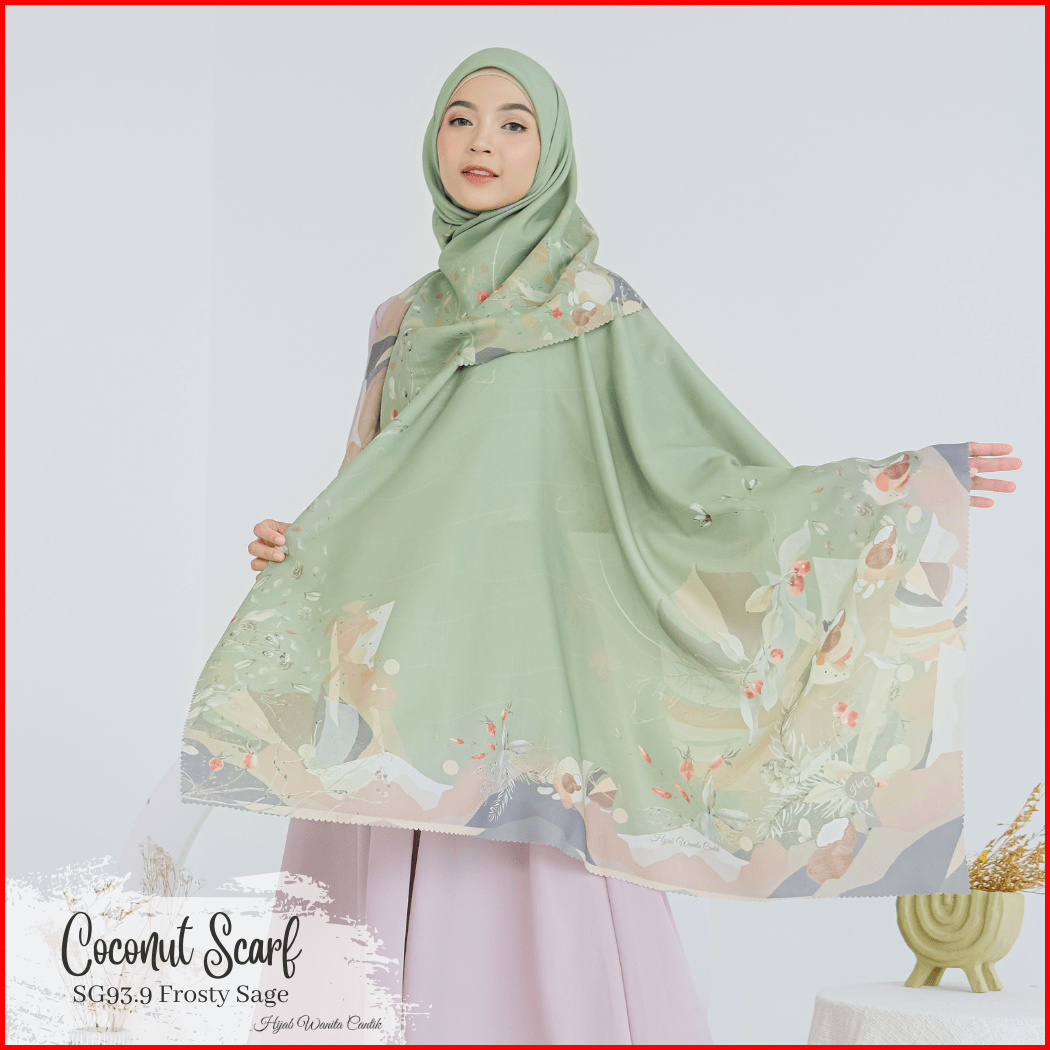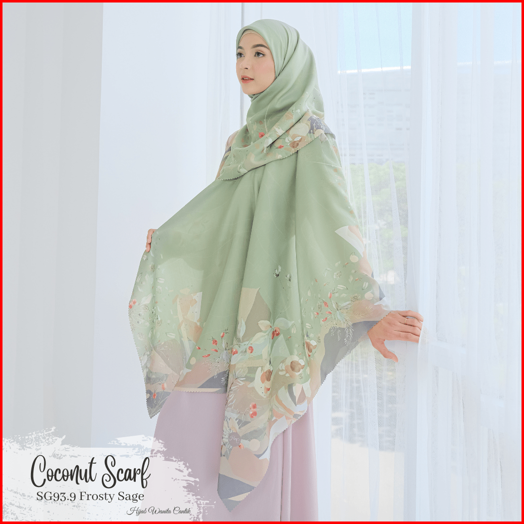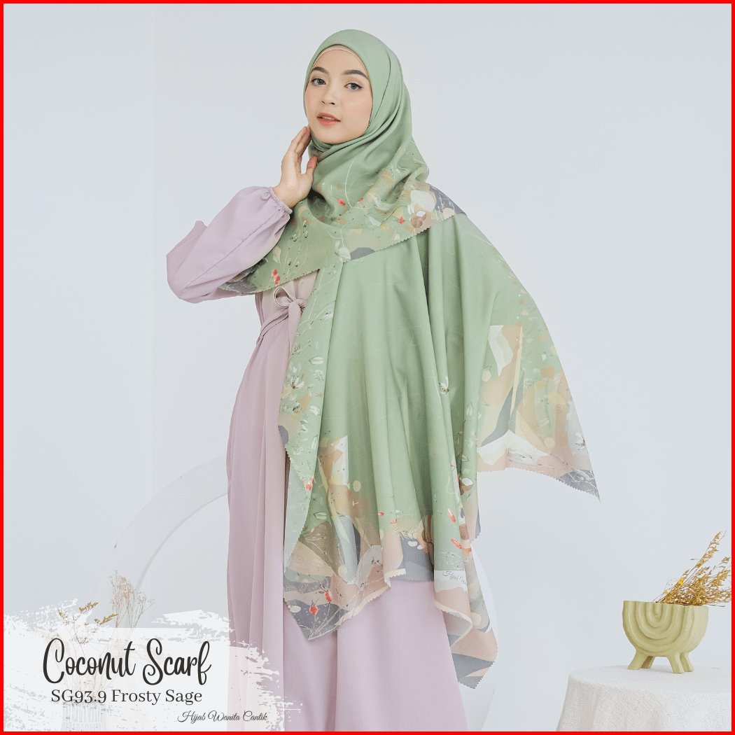 Hijabwanitacantik - Segiempat Coconut Scarf Sg93.9 Frosty Sage Bahan Icy Voal Hijab Segi Empat Printing Jilbab Motif Pre