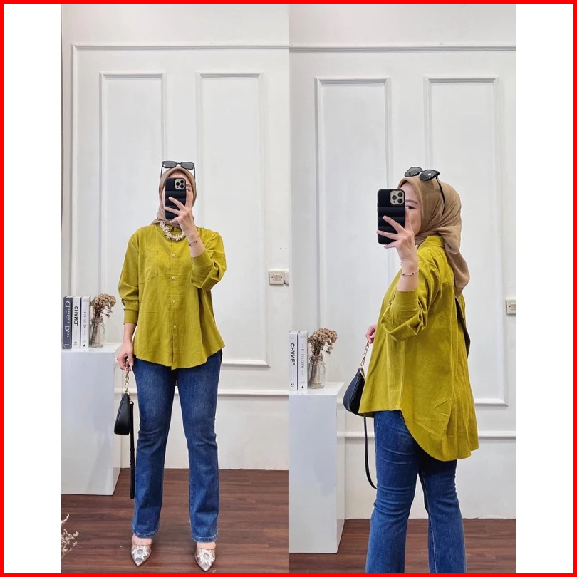 Onella Blouse Atasan Wanita Kekinian Jumbo Ld 120 Terbaru Bahan Linen Premium Busui Atasan Wanita Kemeja Korean Style