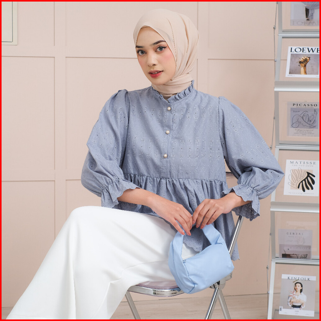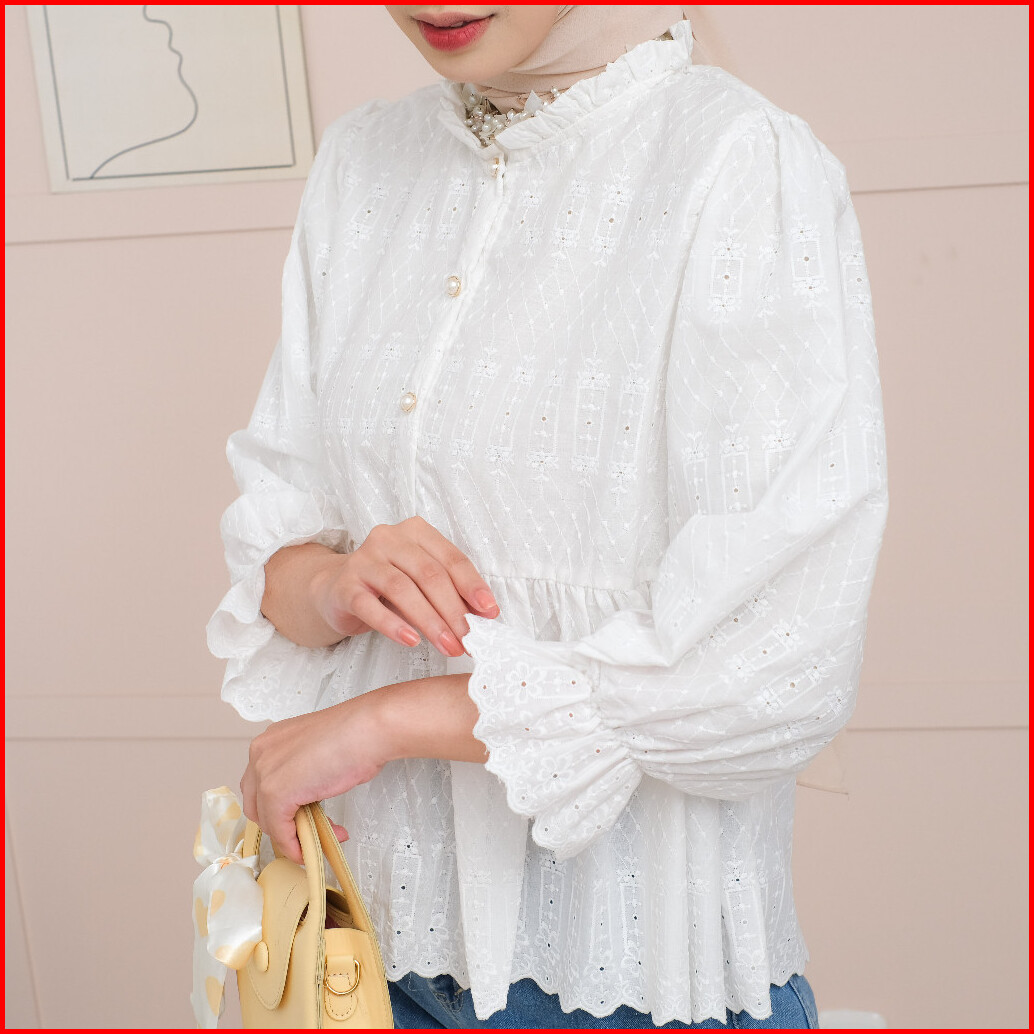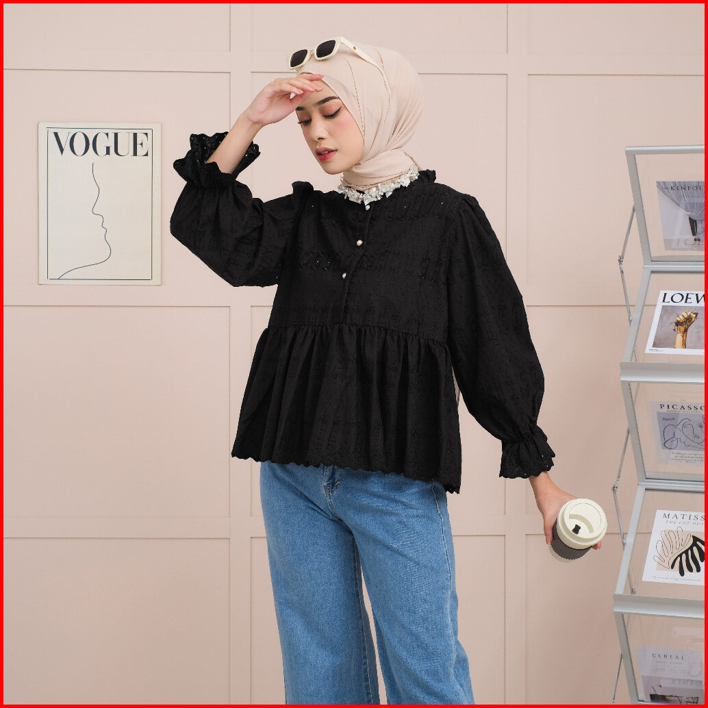 Mayoutfit Seqiza Blouse Atasan Bordir Kerah Frill Cutting Layer