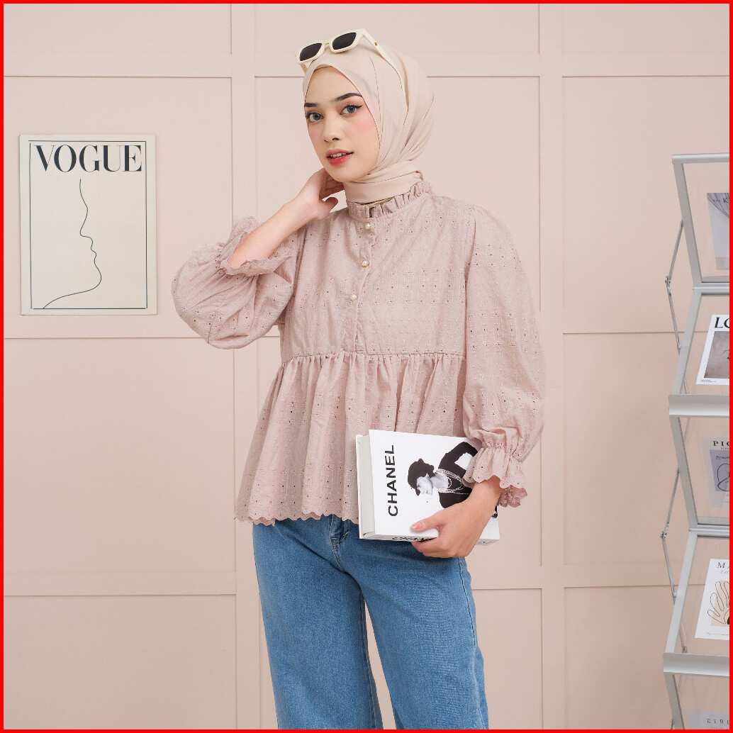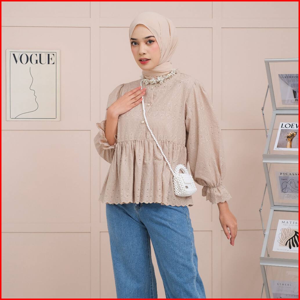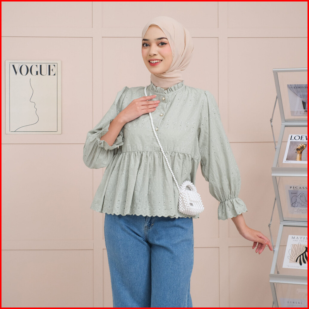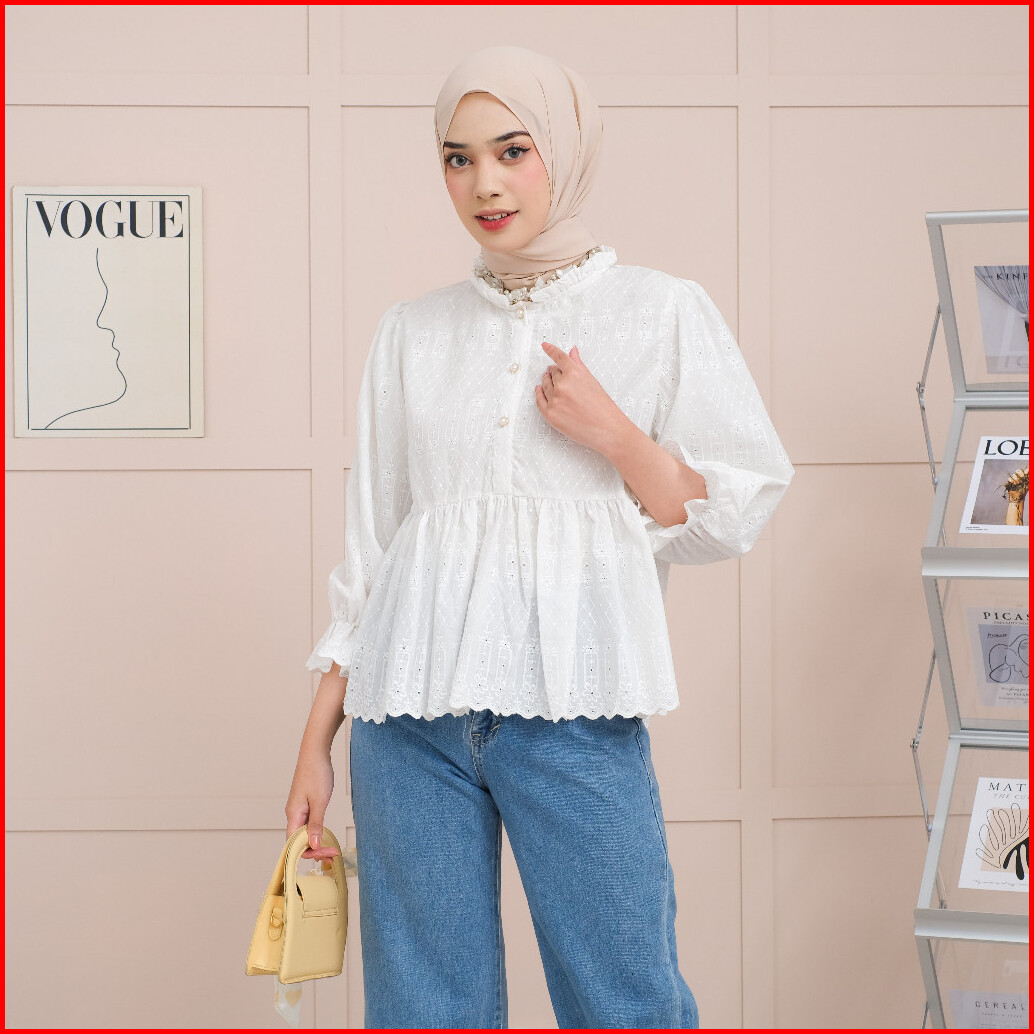 Mayoutfit Seqiza Blouse Atasan Bordir Kerah Frill Cutting Layer
