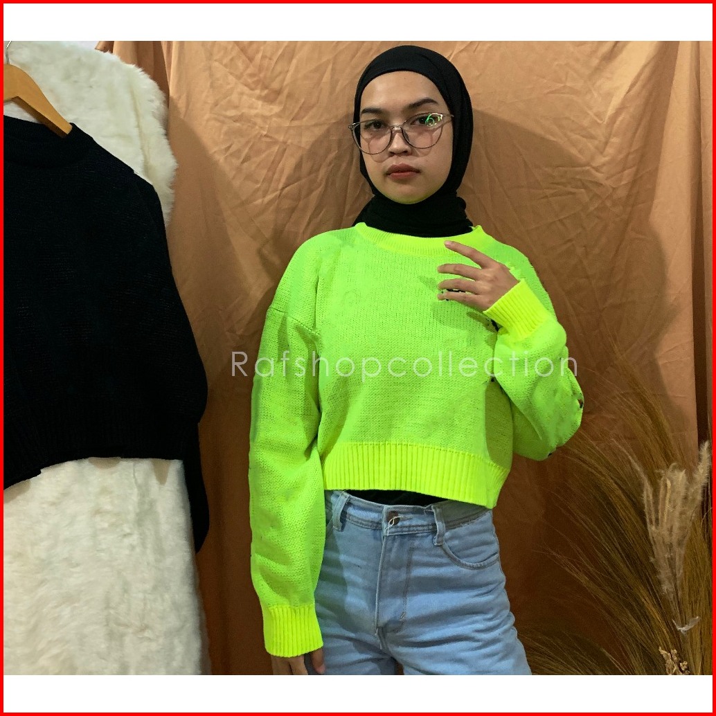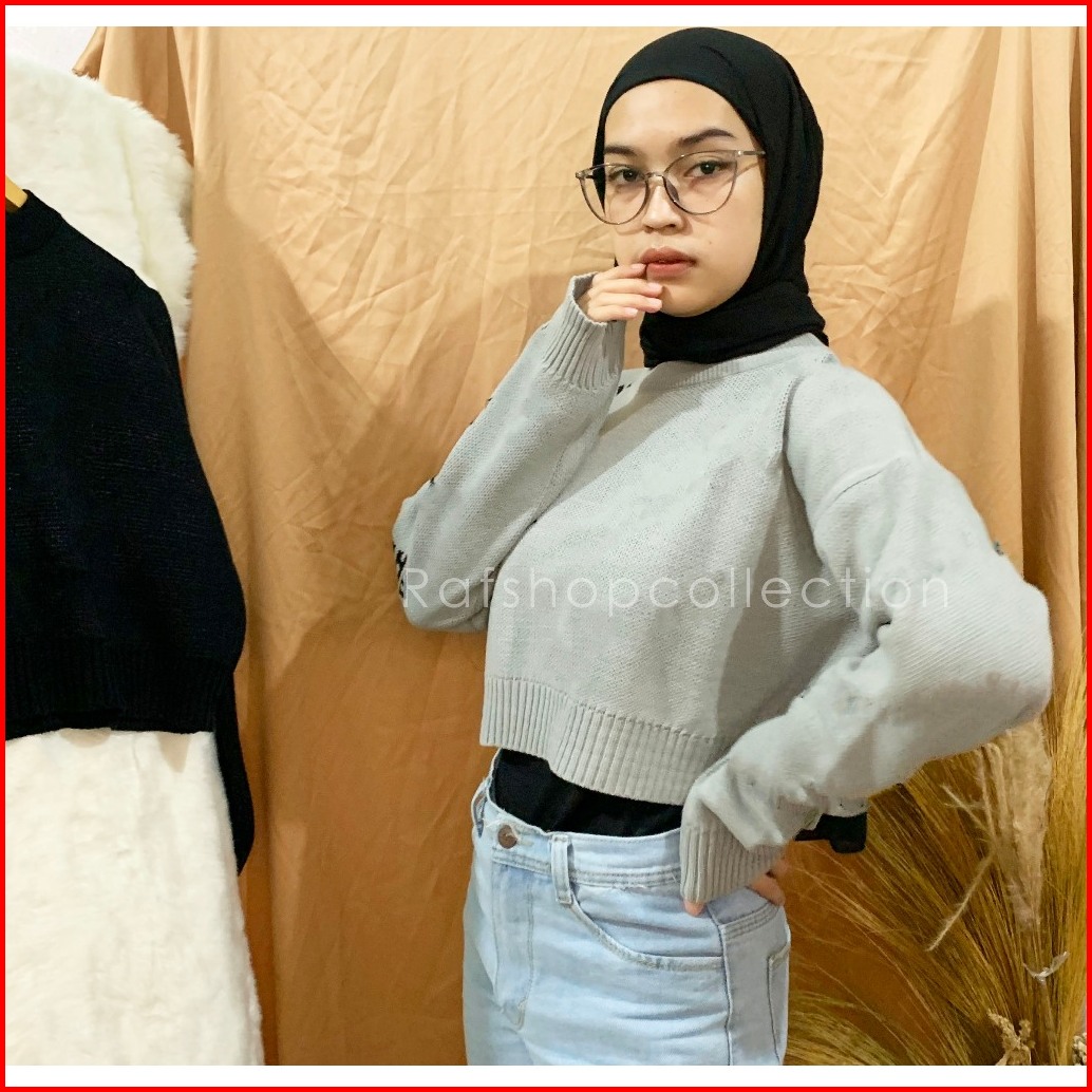 Crewneck Motif Tulisan Sweater Crop Sweater Rajut Rajut Tebal