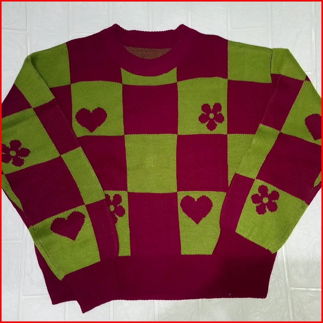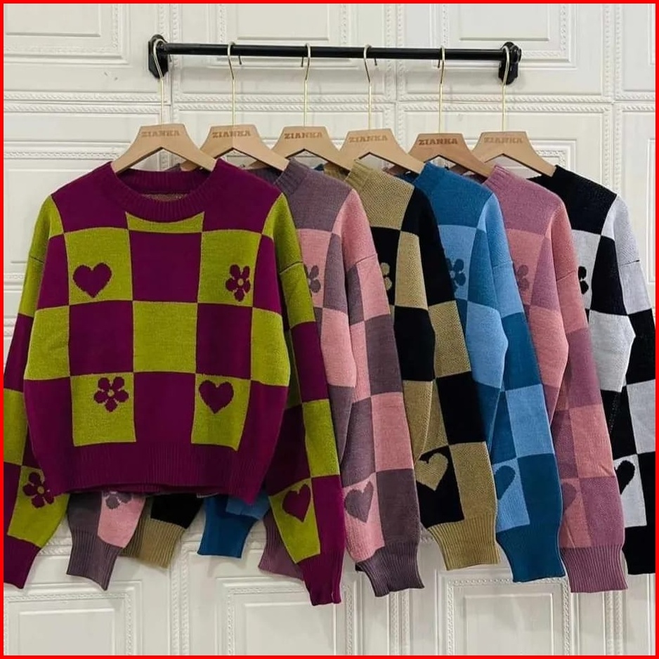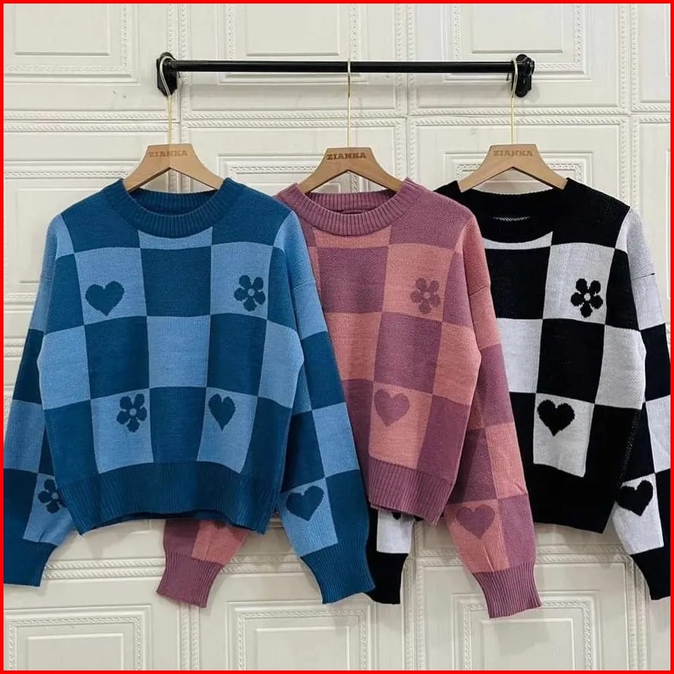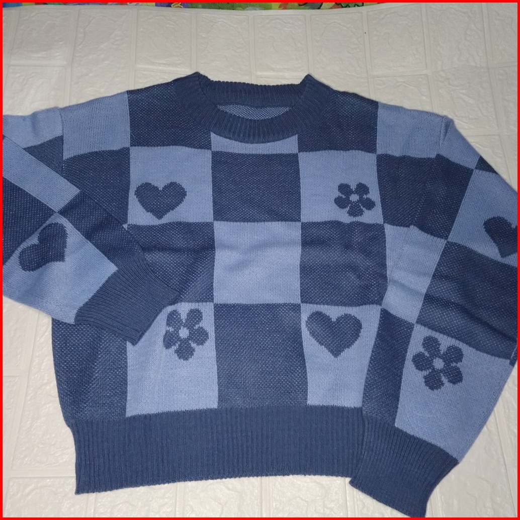 Sweater Rajut Kotak Love Flower Crop Premium Wanita Bahan Halus