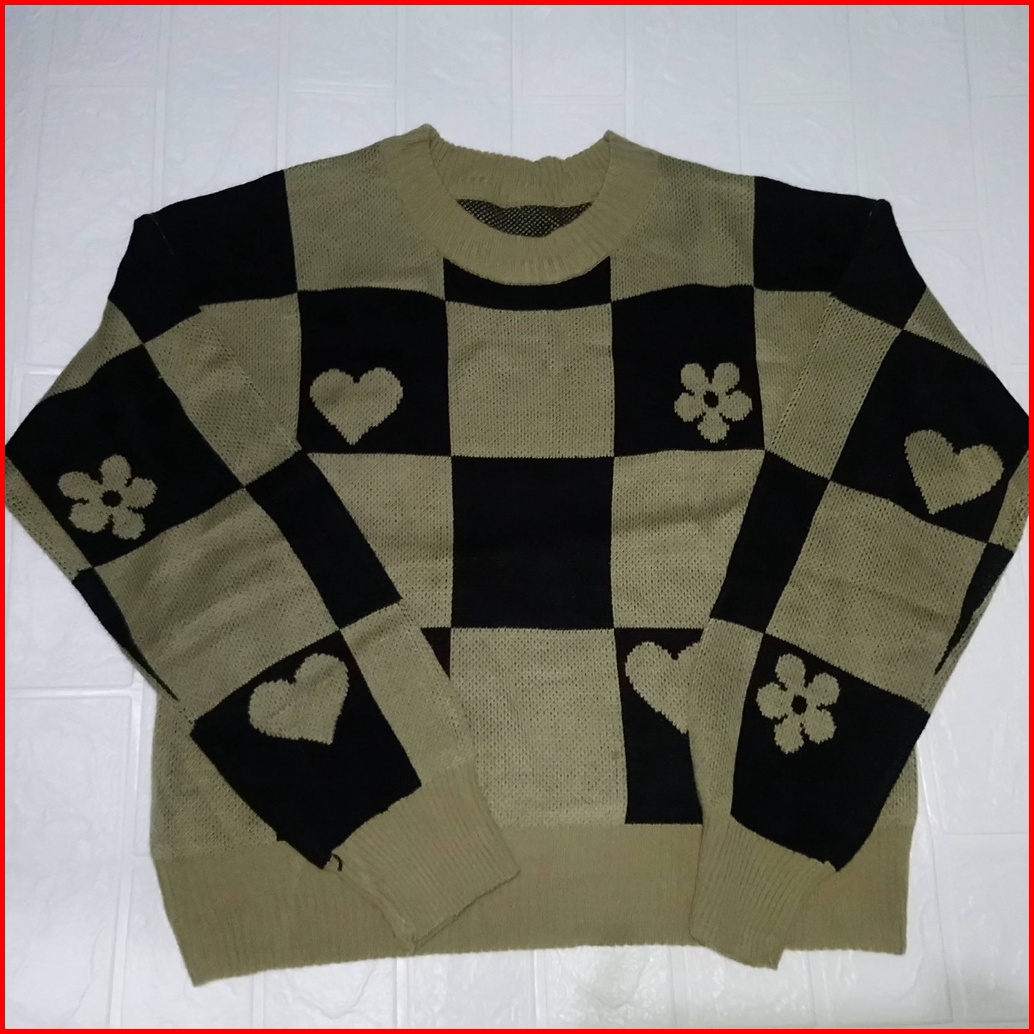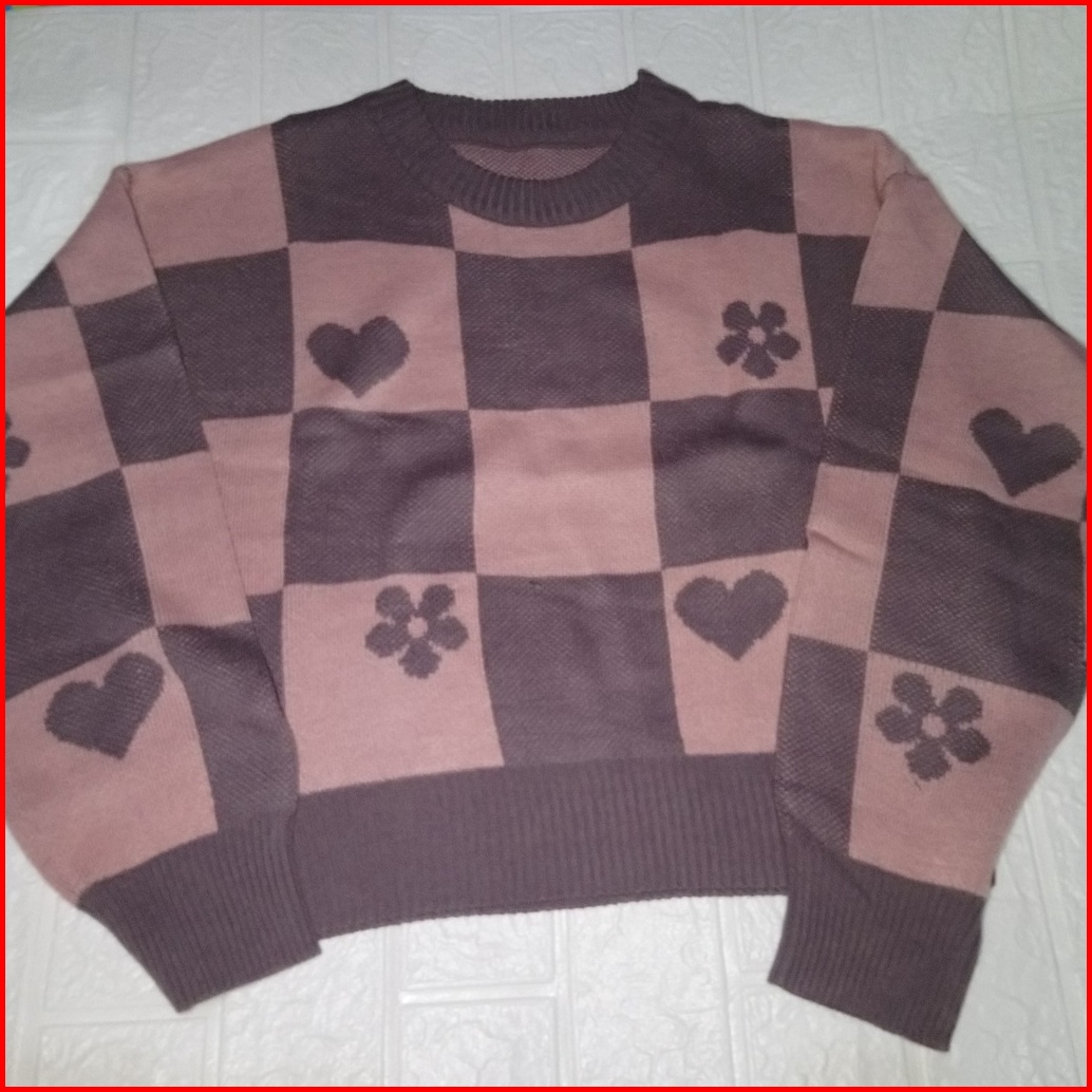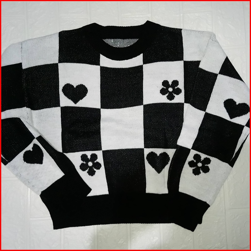 Sweater Rajut Kotak Love Flower Crop Premium Wanita Bahan Halus
