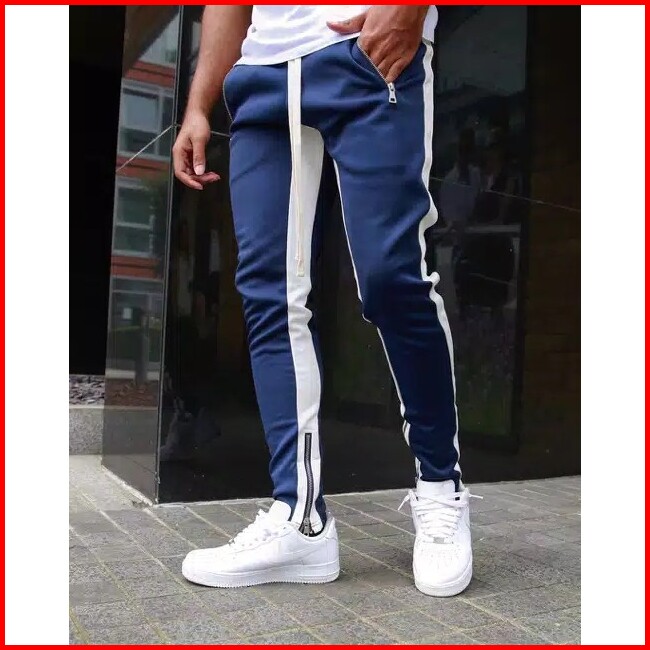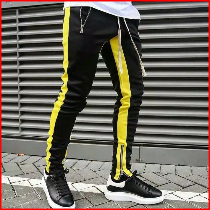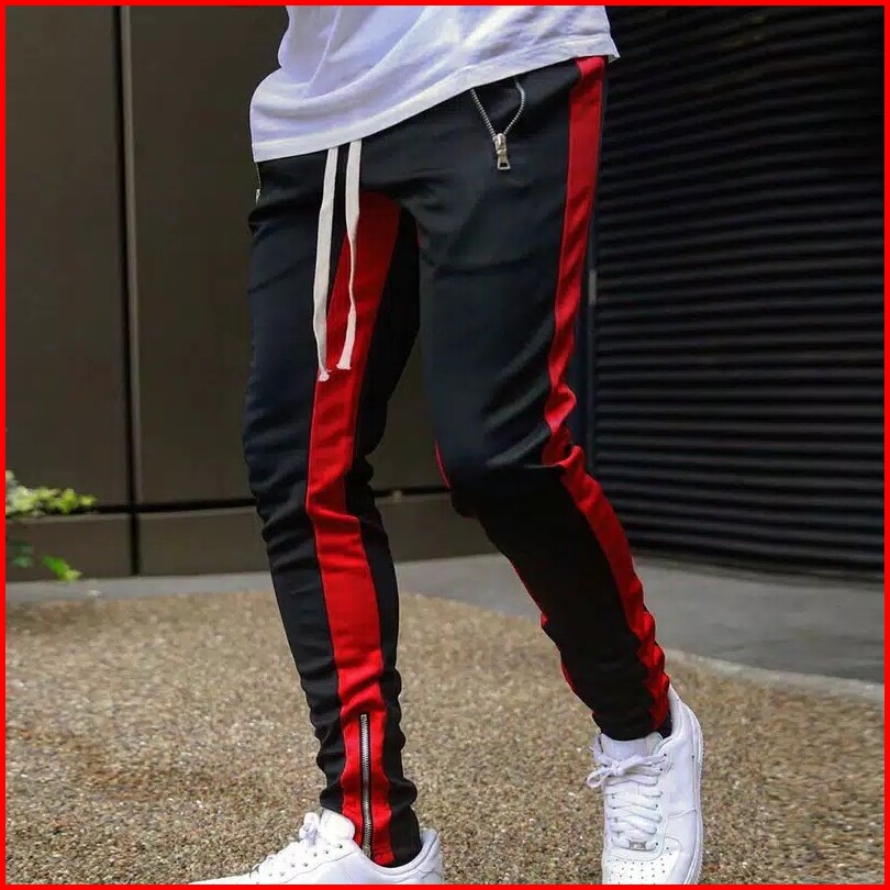 Zorka Celana Panjang Pria Hypebeast Celana Joger Pria Hitam List Merah Double Zipper