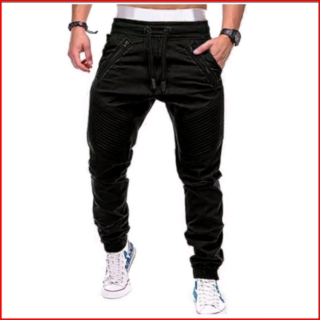 Celana Jogger Pria Zipper Jumbo Terbaru Bahan Melar Lembut