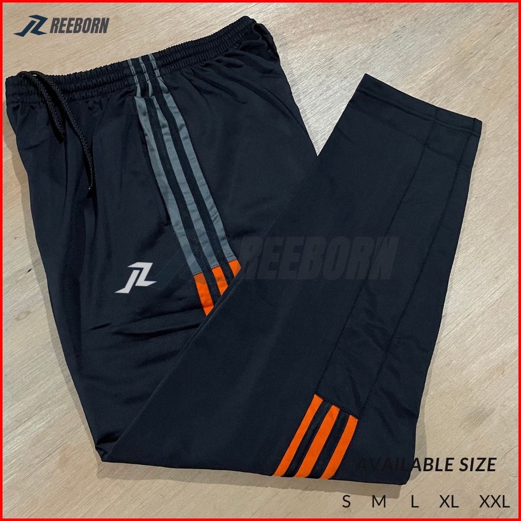 Training Model 3 Strip Kombinasi Abu Orange Rbn01 Celana Panjang Olahraga