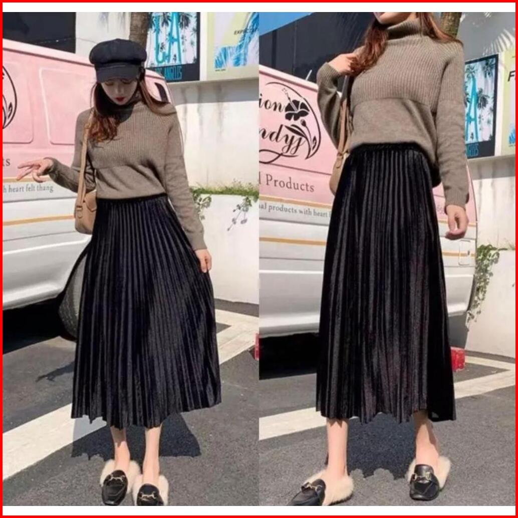 Rok Plisket Beludru 7 8 Import Premium - Rok Plisket - Rok 7 8 - Rok Beludru