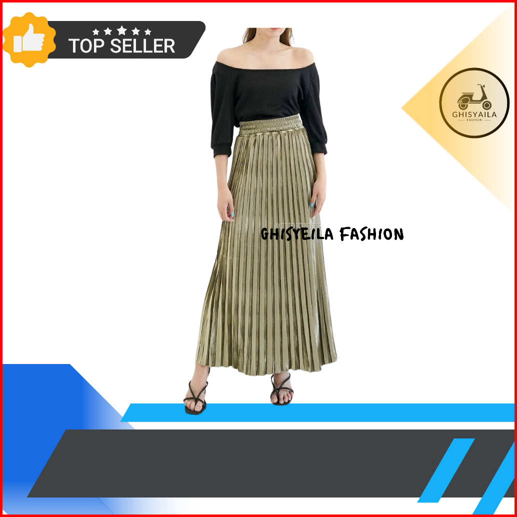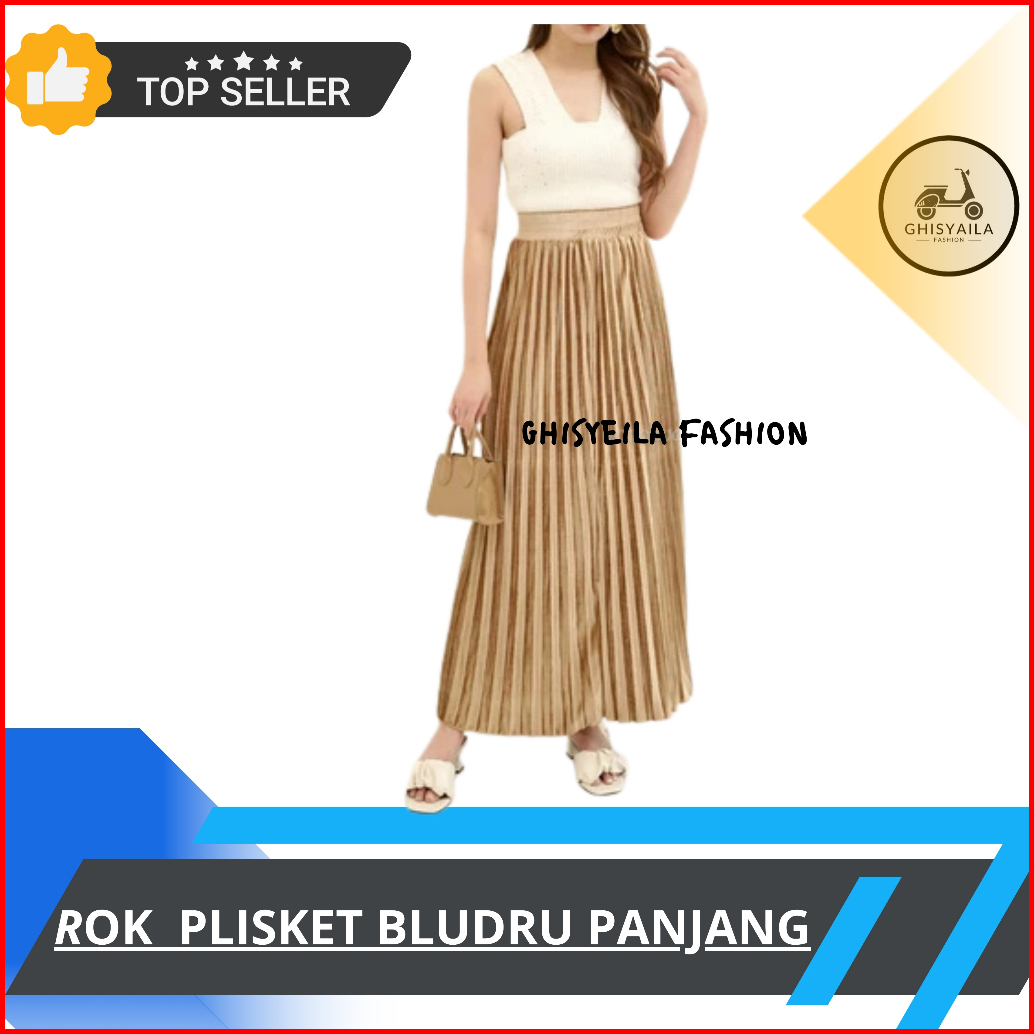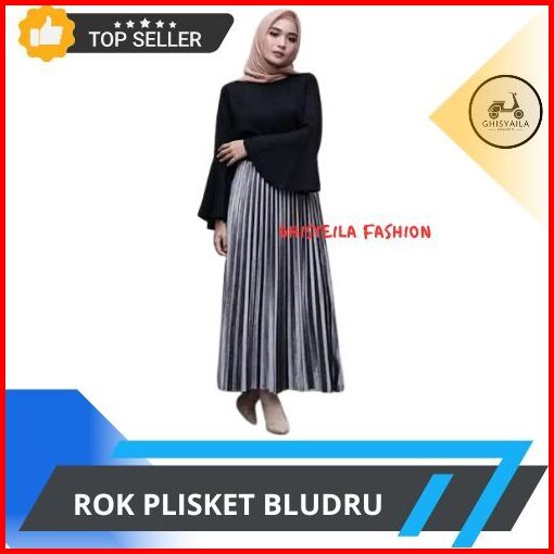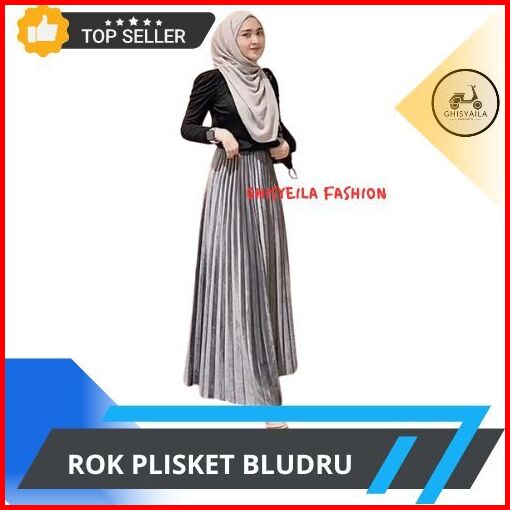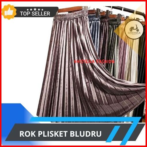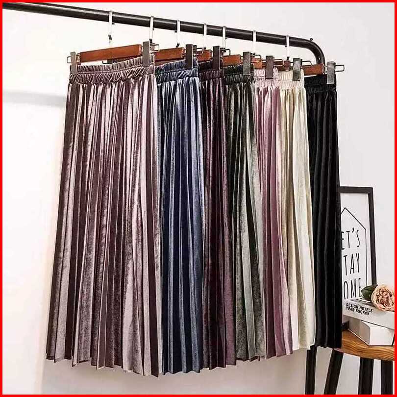 Rok Bludru Plisket Panjang Import