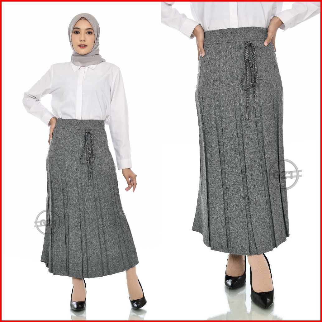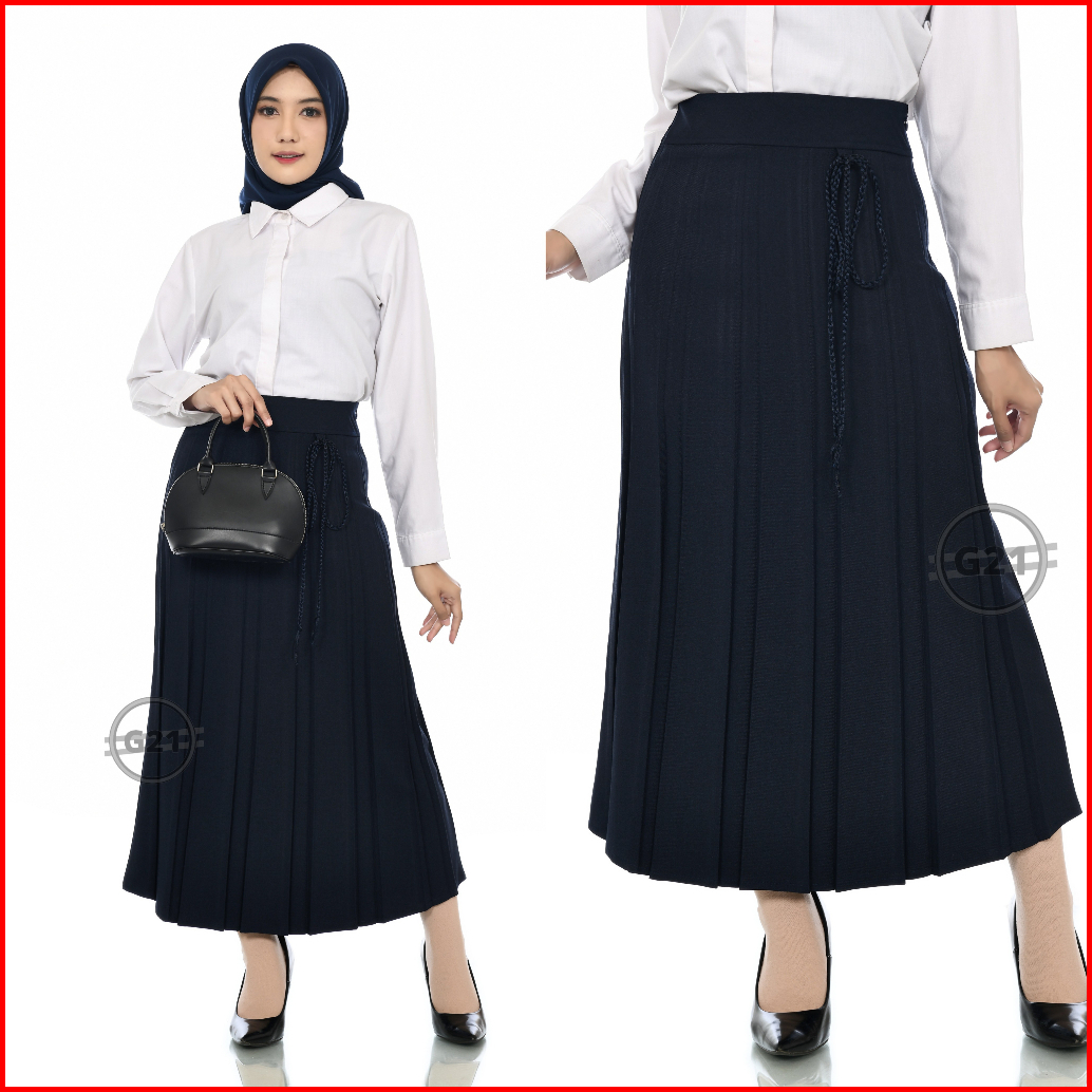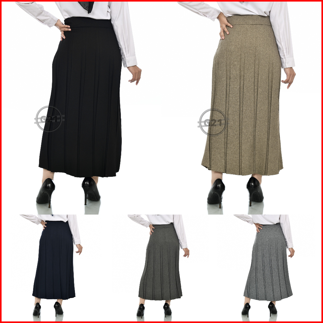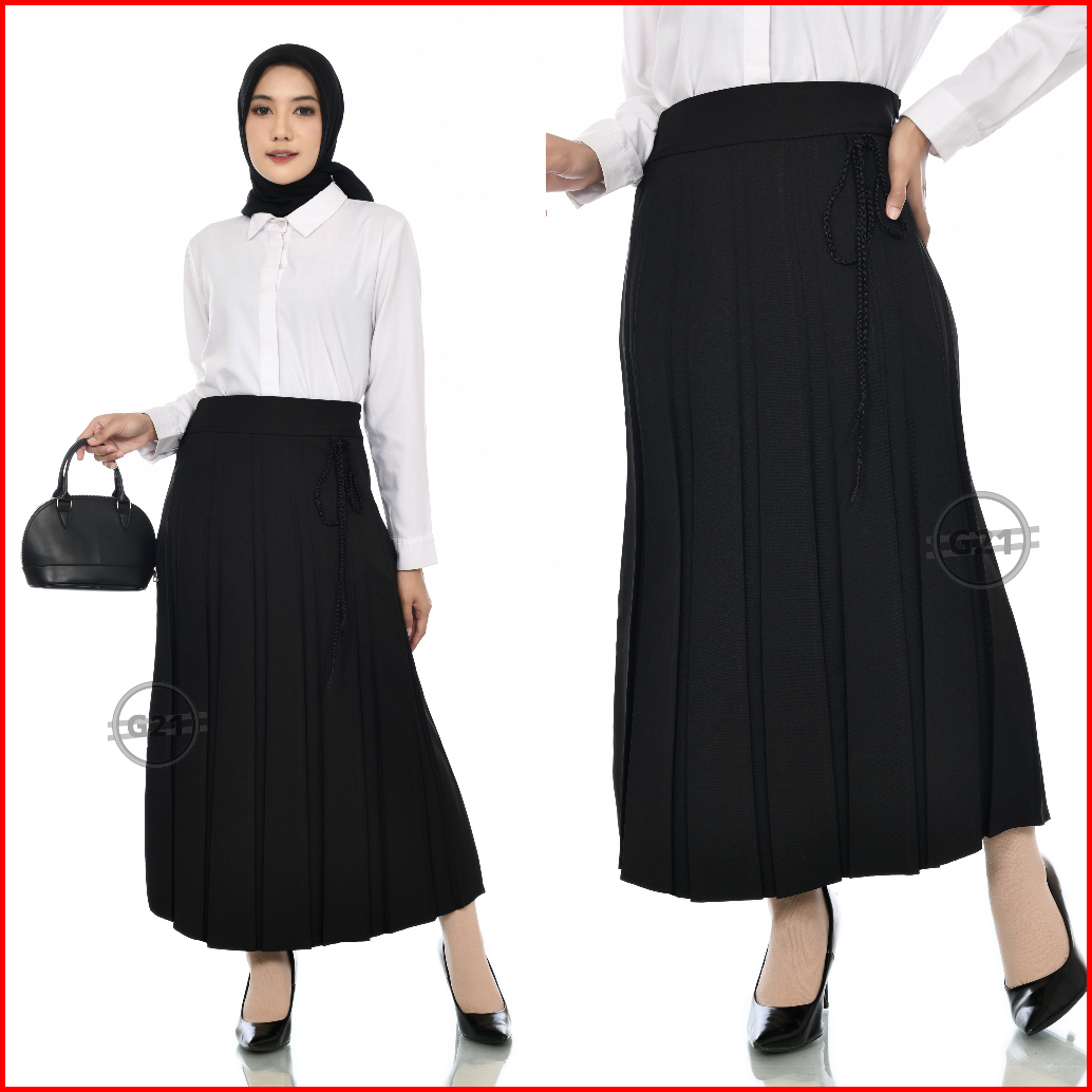 Rok Panjang Prisket Rempel Formal Kerja Kantor Hitam Wanita Bahan Polycotton Premium