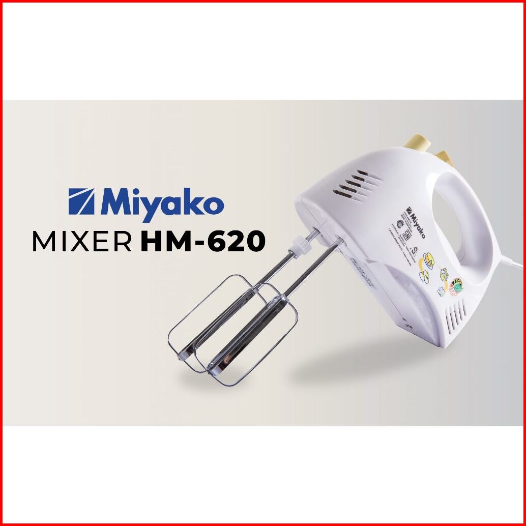 Miyako Mixer Hm 620 Hand Mixer Tangan Pengocok Telur 190 Watt Dengan 5 Kecepatan Pembuat Adonan Kue
