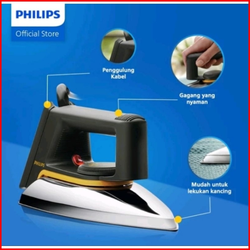 Philips Setrika Kering Legendaris Classic Dry Iron Hd1172 99 Hitam Tapak Anti Lengket