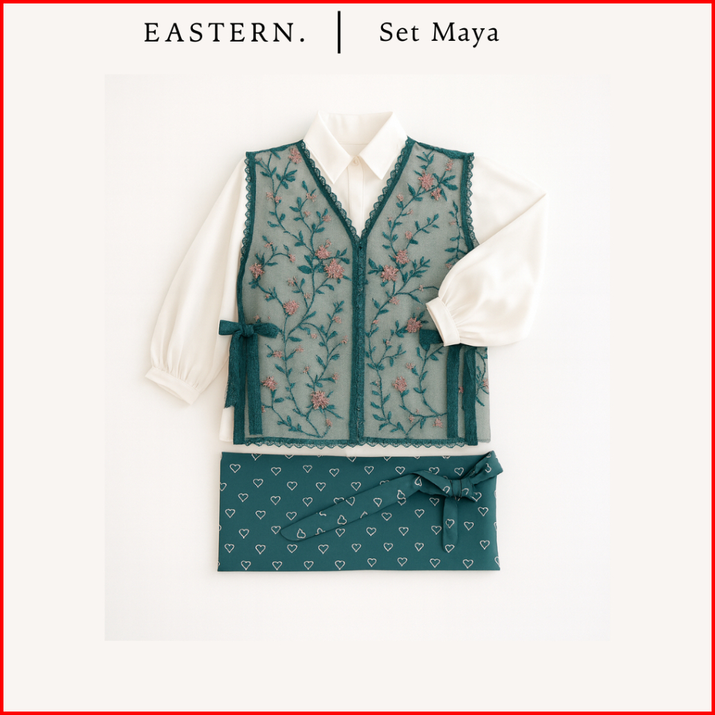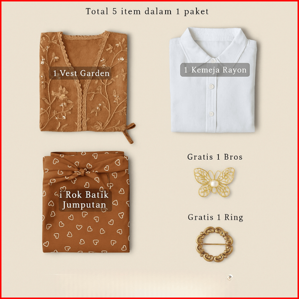 Paket 5in1 Maya Vest Kemeja Rayon Rok Lilit Batik Jumputan Oneset Brukat Garden Kondangan Simpel