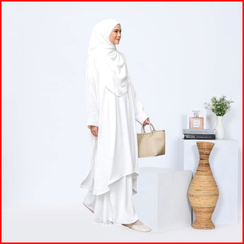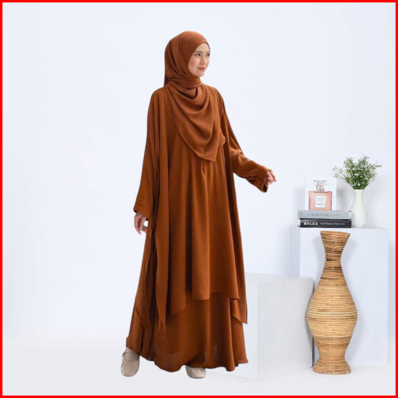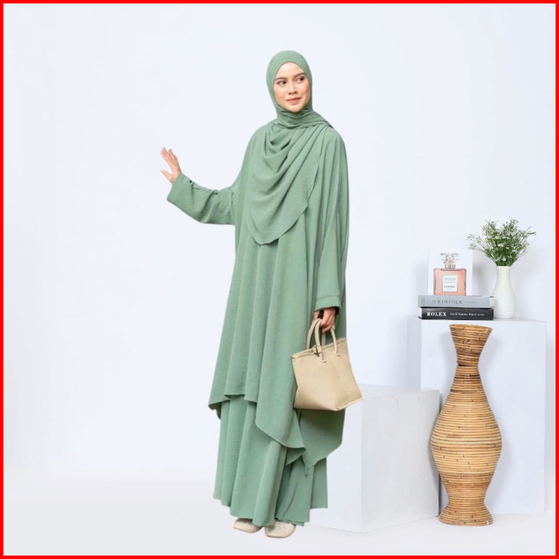 One Set Rok Tunik Melayu Syari Pashmina Oval Setelan Abaya Wanita Set Hijab Crinkle Airflow Premium