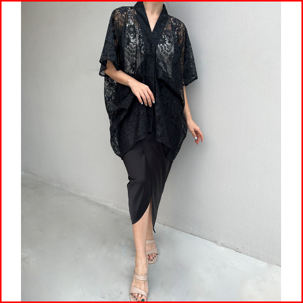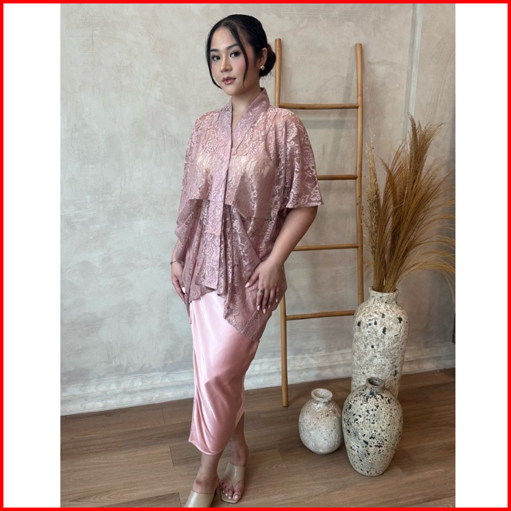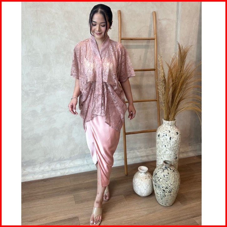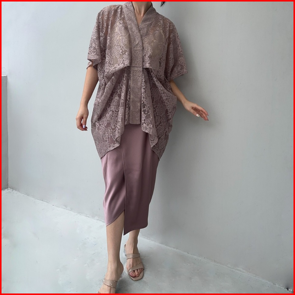 Zalima Karla Kebaya Modern Kaftan Set With Silk Satin Midi Skirt Baju Pesta Set Formal Baju Kasual Set Wanita Set Muslim