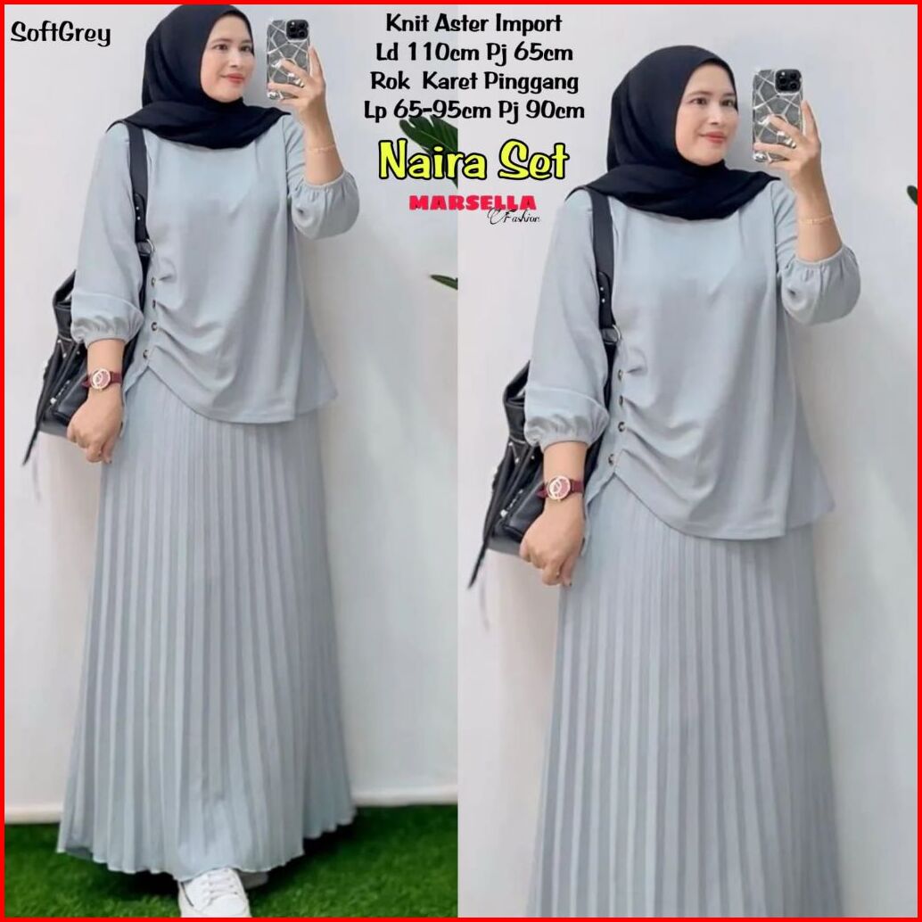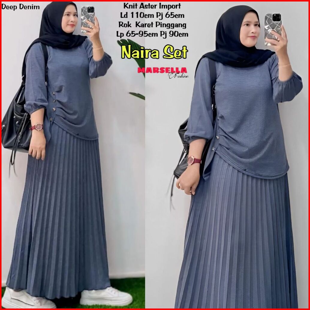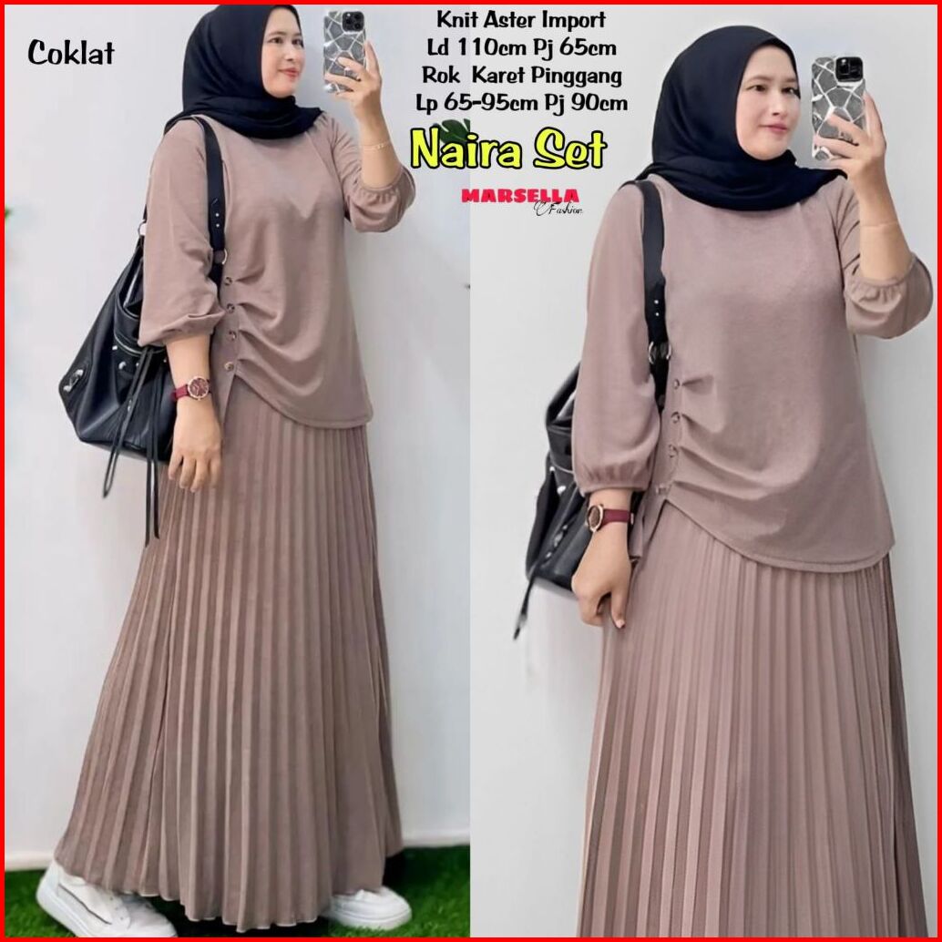 Naira Set By Marsella Setelan Wanita Atasan Mix Rok Bahan Knit Aster Best Seller