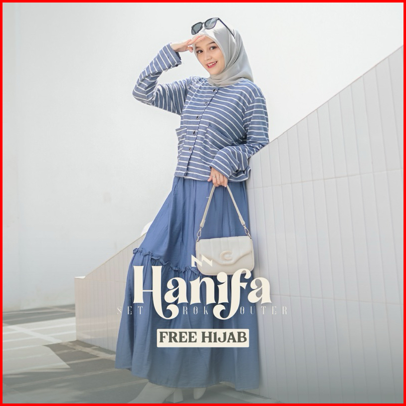 Myza Free Hijab Hanifa One Set Rok Outer Cardi Premium