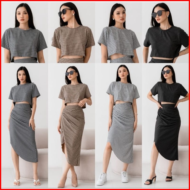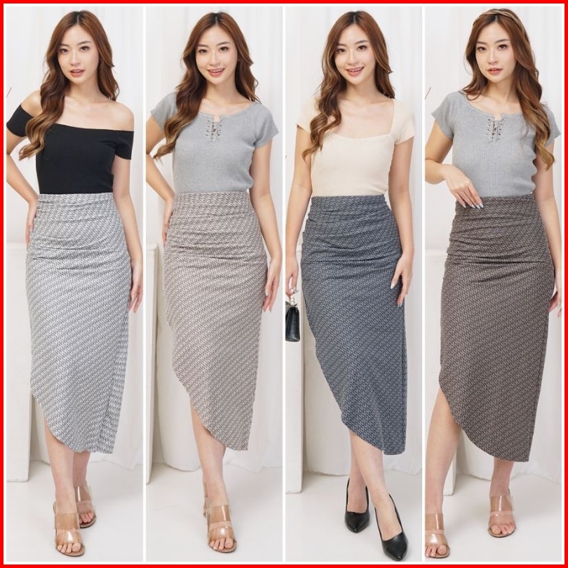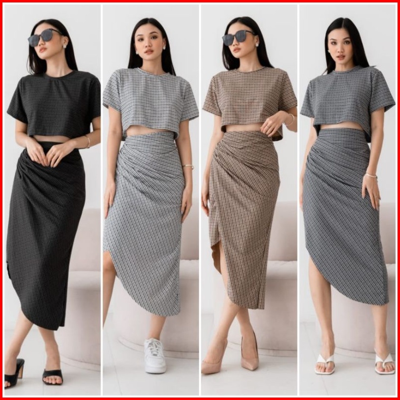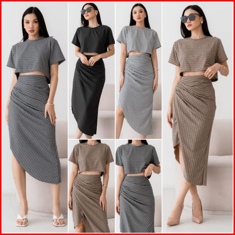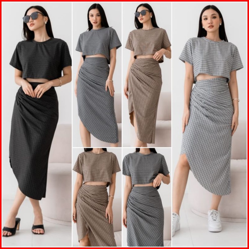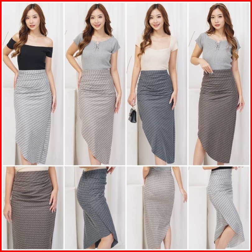 Sale Best Seller Premium Briellie 2 In 1 Knit Set Skirt Only Texture Pattern Knit Crop Blouse With Asymmetric Skirt Sete