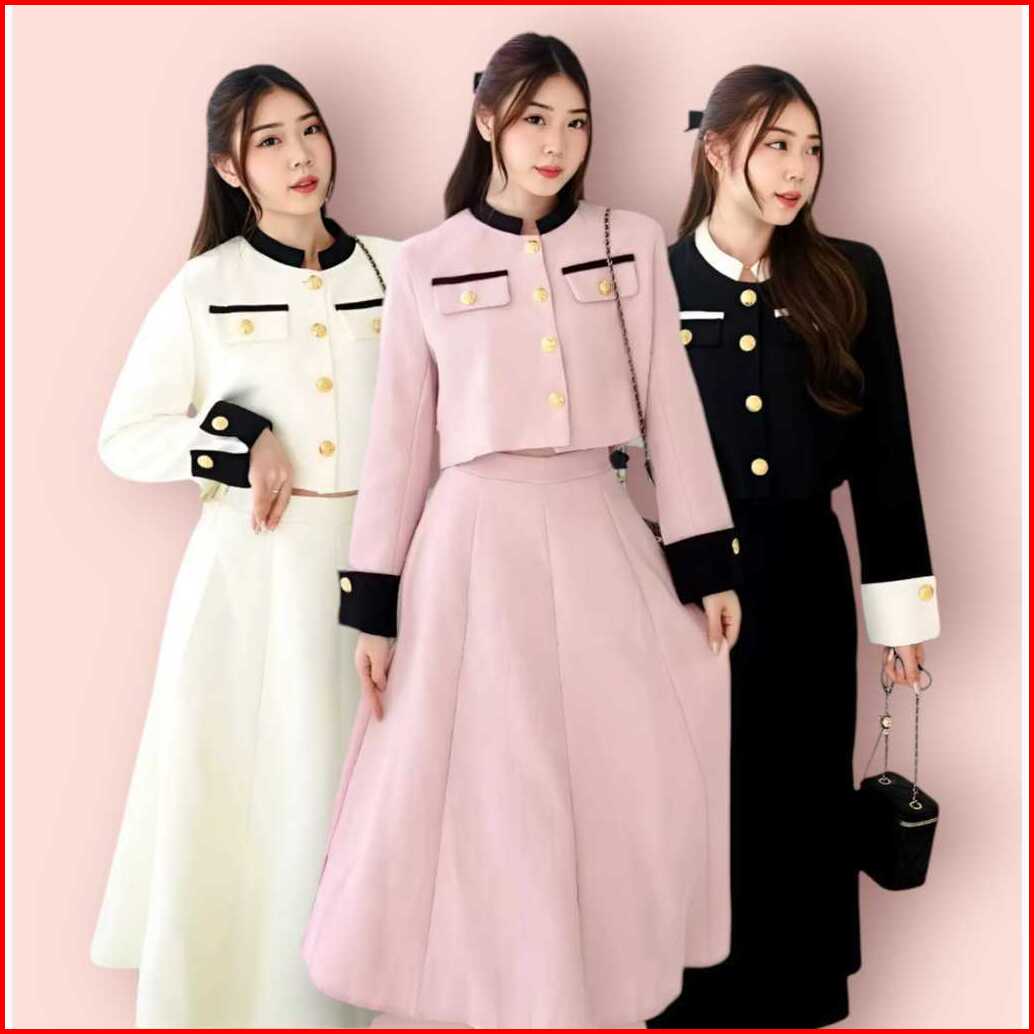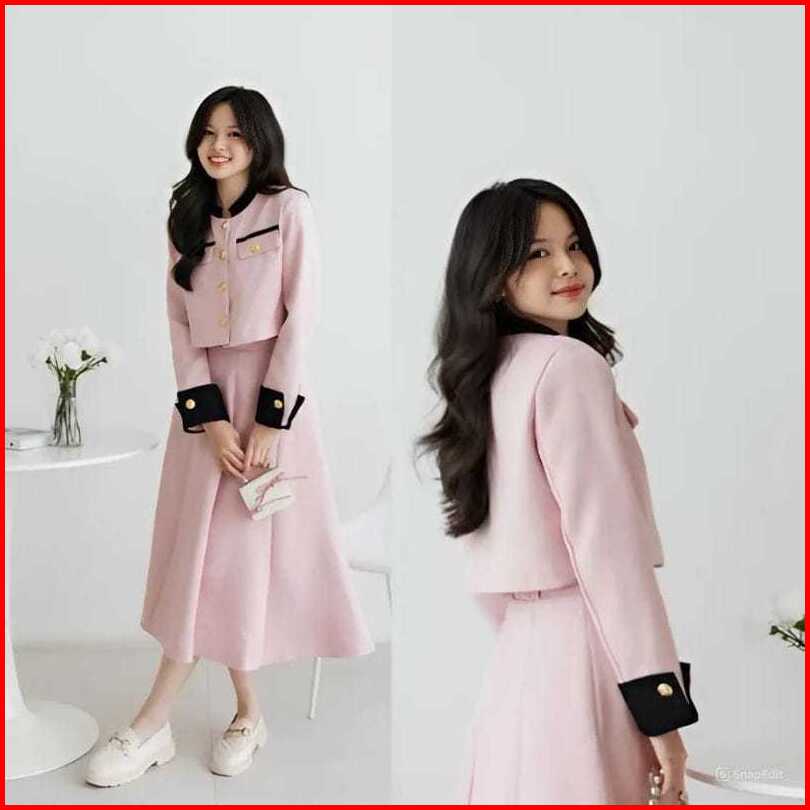 Setelan Blazer Remaja Baju Dan Rok Model Korea Set Wanita Kekinian One Set Polos Tebaru