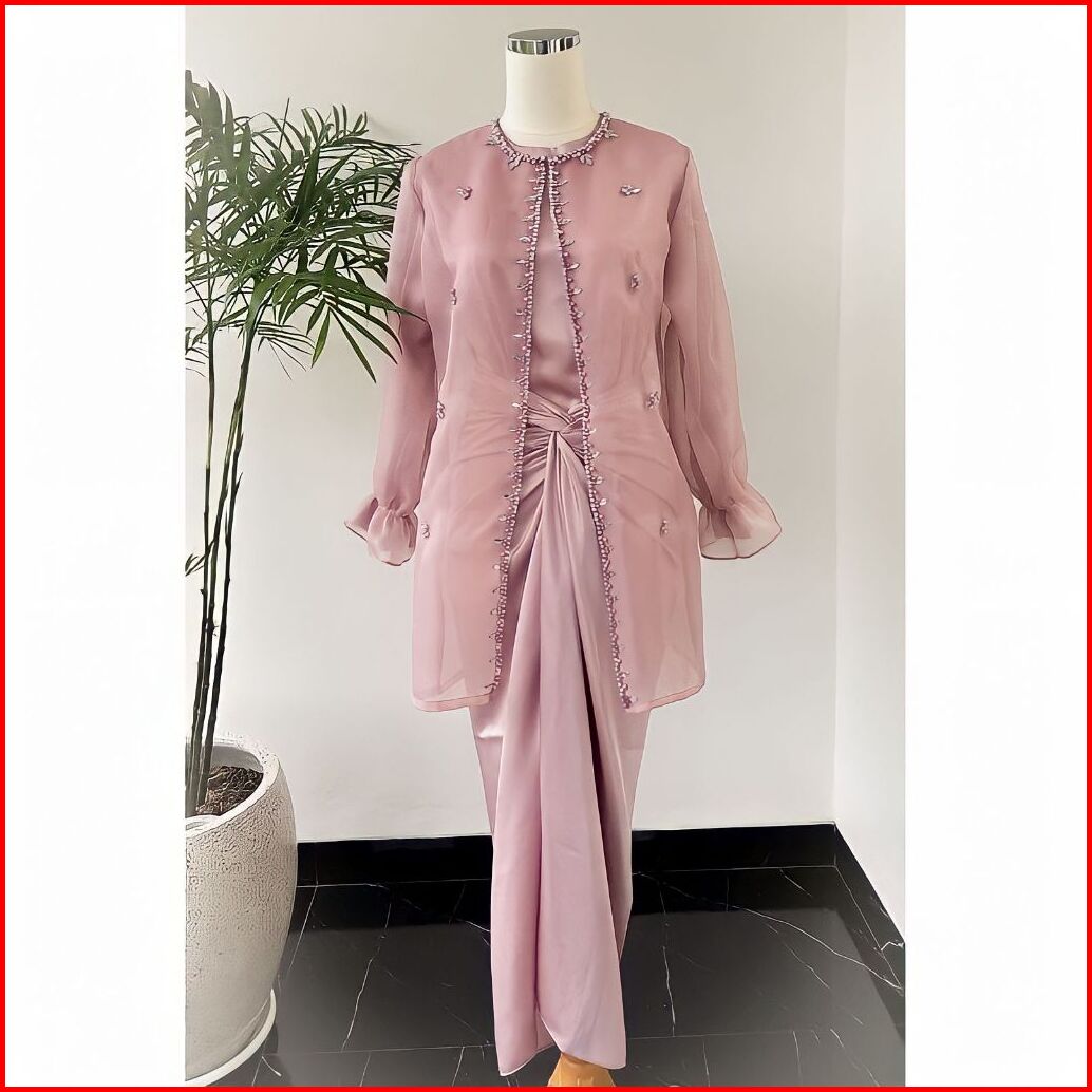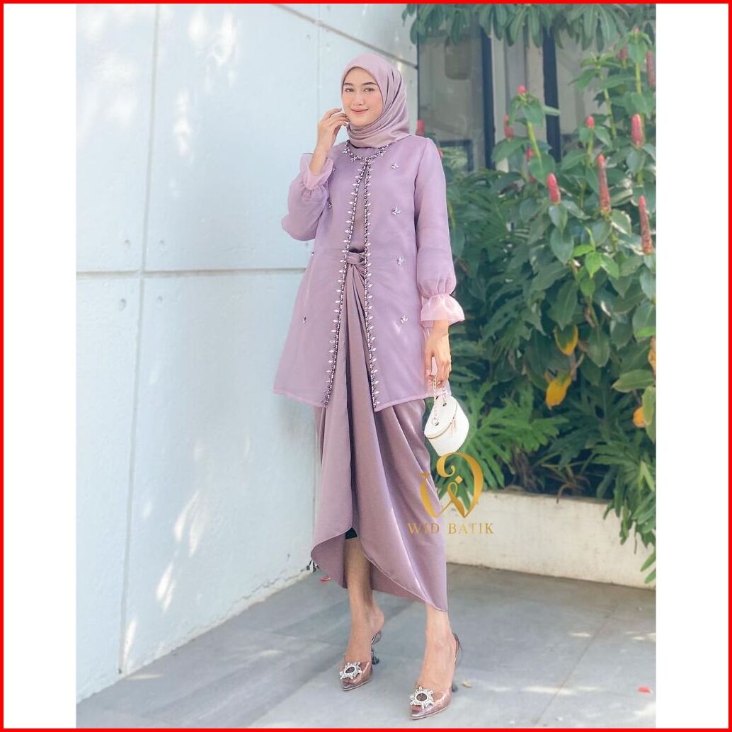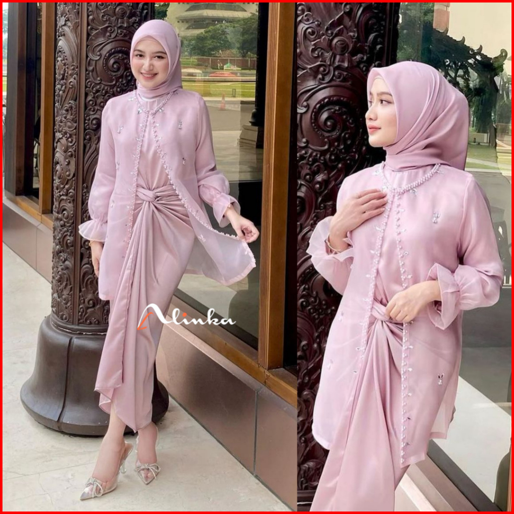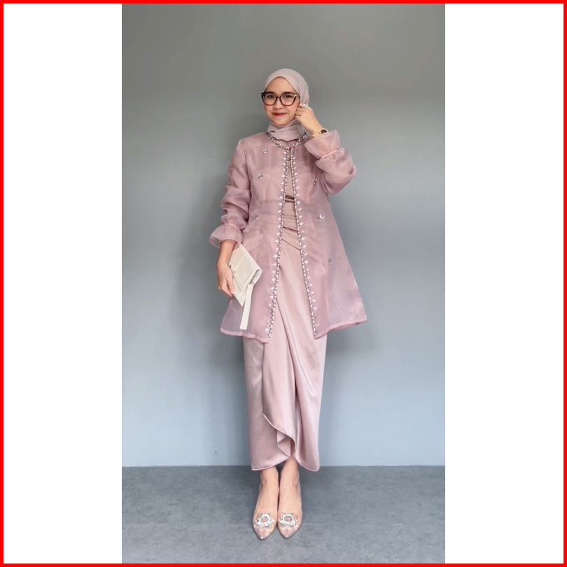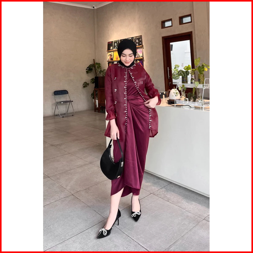 One Set Wanita Kekinian Jeema Organza Oneset Baju Setelan Terbaru Rok Lilit Outer Inner Lengan Panjang Bahan Premium
