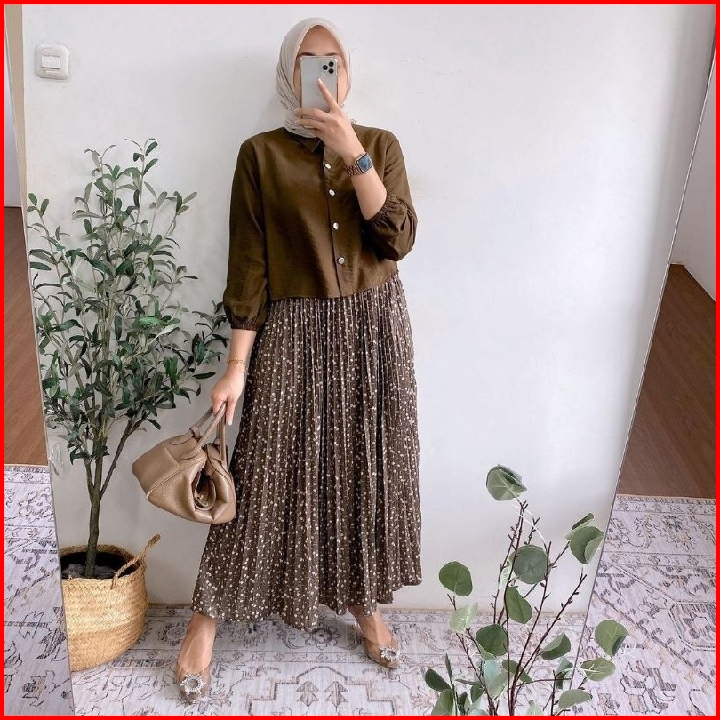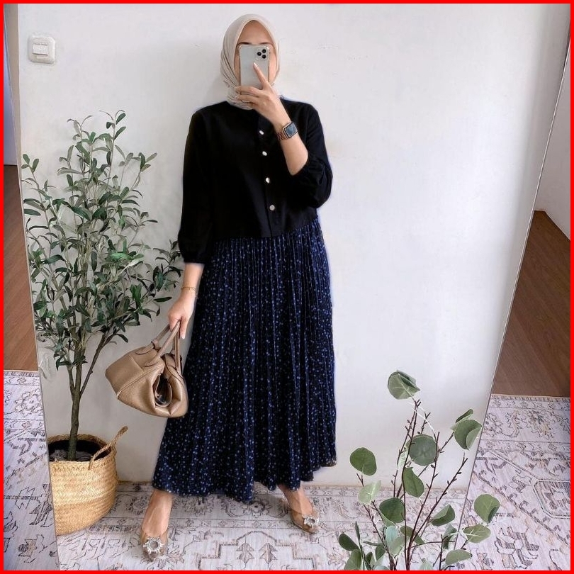 Helisa Set Rok New Premium Viral Setelan Rok Plisket Terlaris Oneset Blouse Kekinian