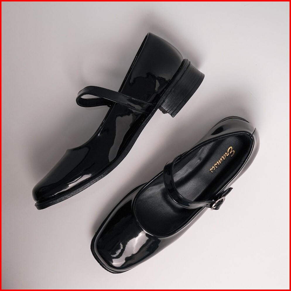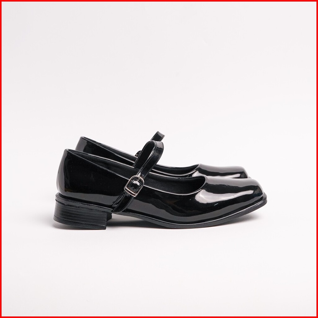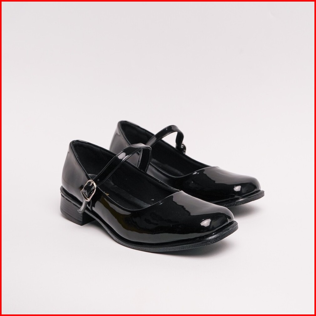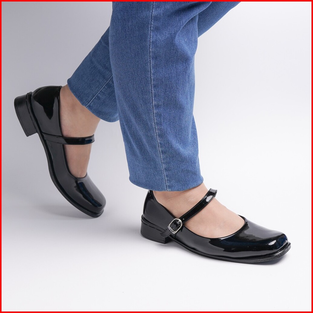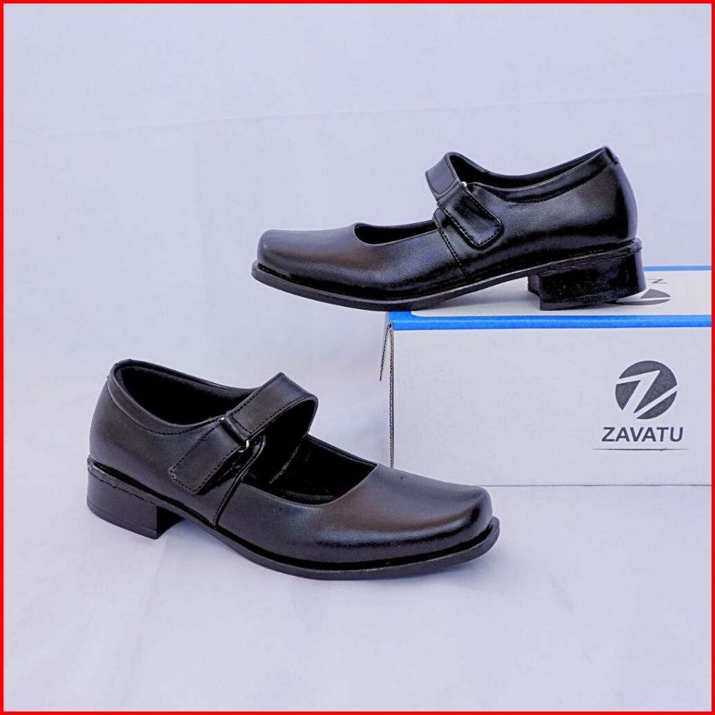 Zavatu Sepatu Pantofel Hitam Hak Heels 2 5cm Paskibra Sekolah Tali Gesper Size 36-43 Jumbo D1 Lx