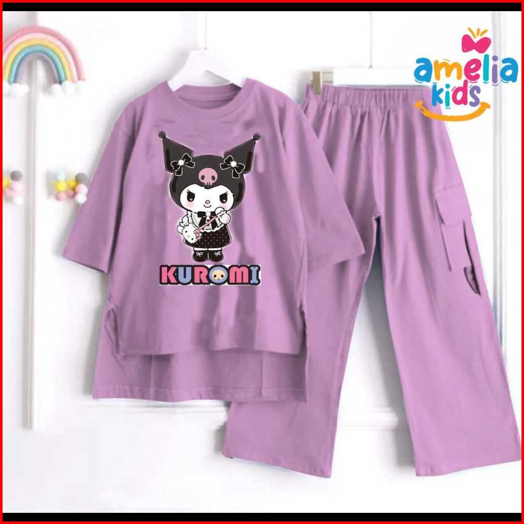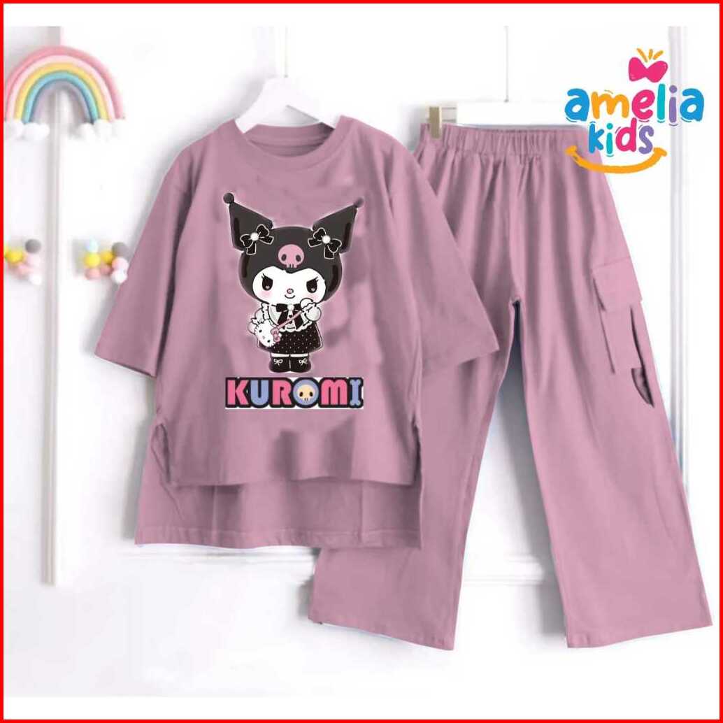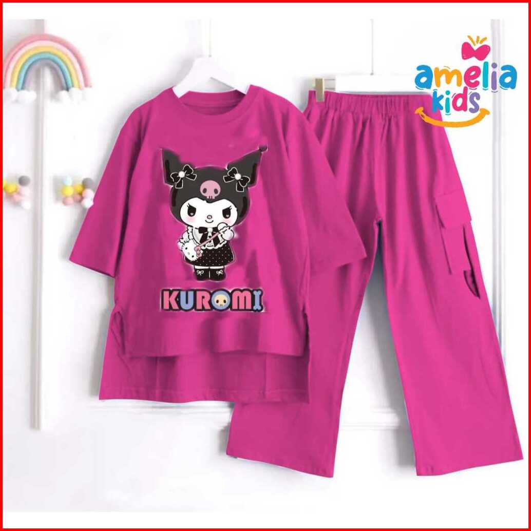 One Set Cargo Motip Sablon Kuromi Setelan Anak Perempuan Bhn Crinkille Premium Fashion Kids Terbaru