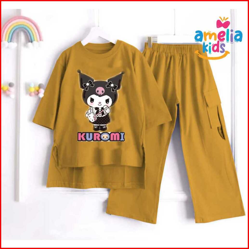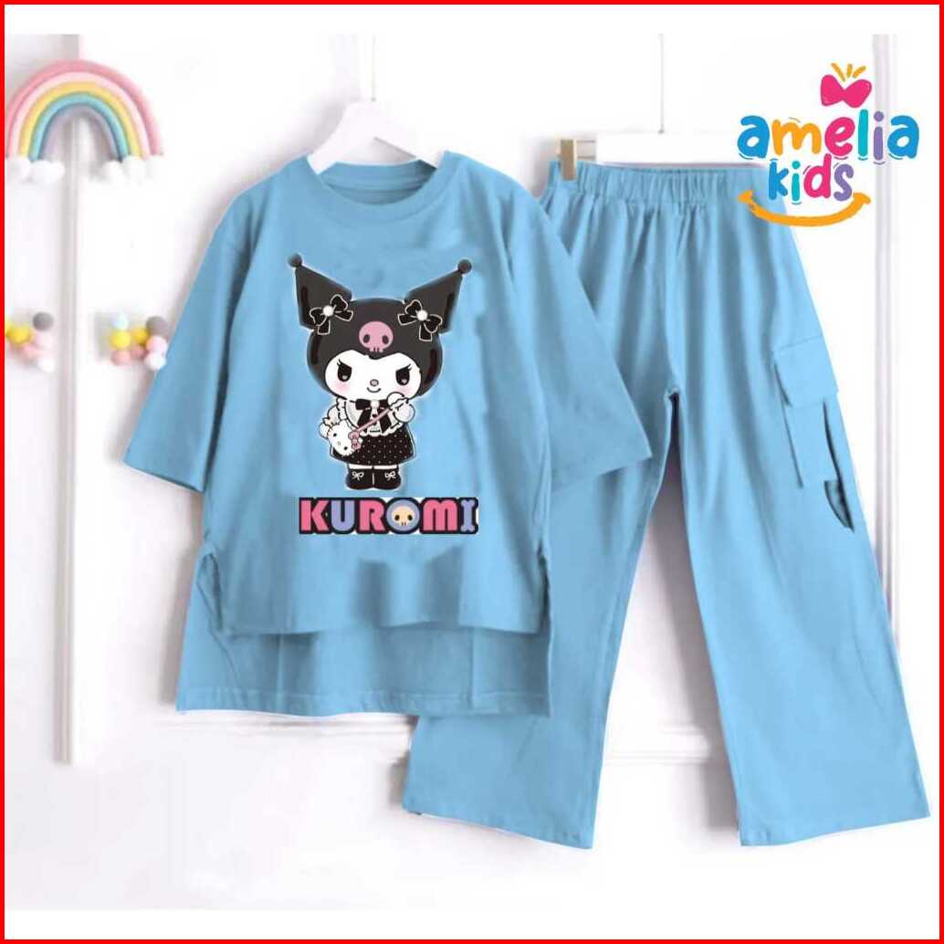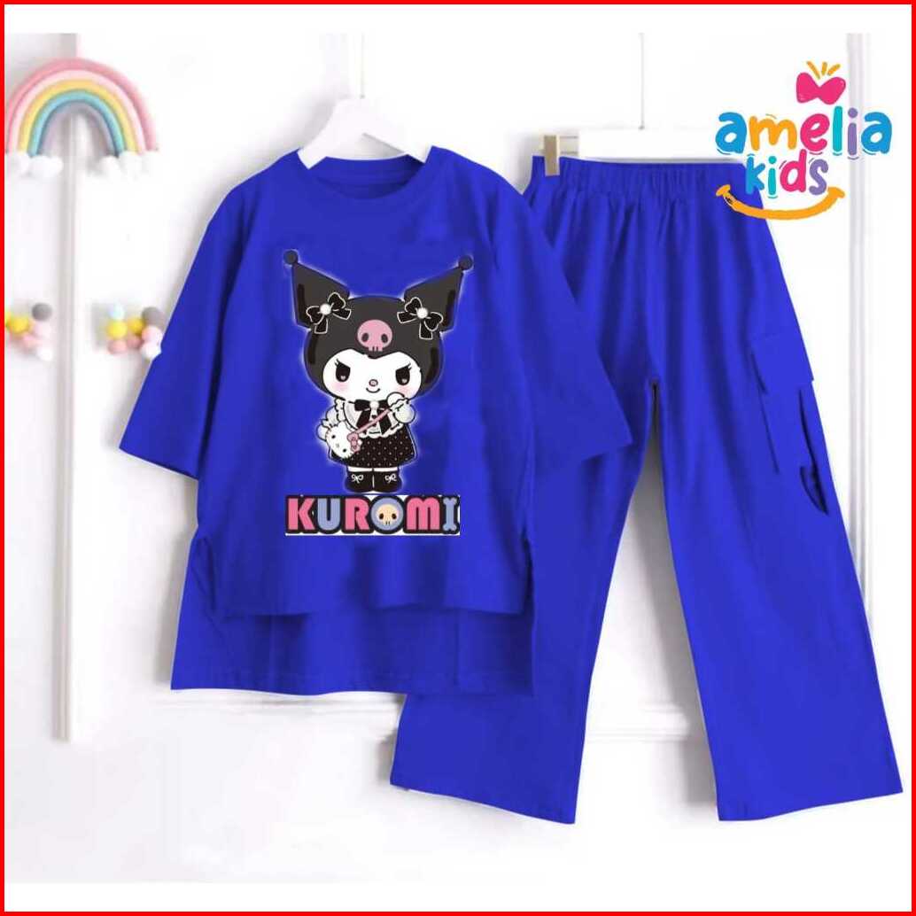 One Set Cargo Motip Sablon Kuromi Setelan Anak Perempuan Bhn Crinkille Premium Fashion Kids Terbaru