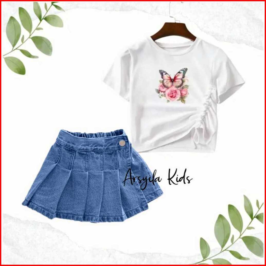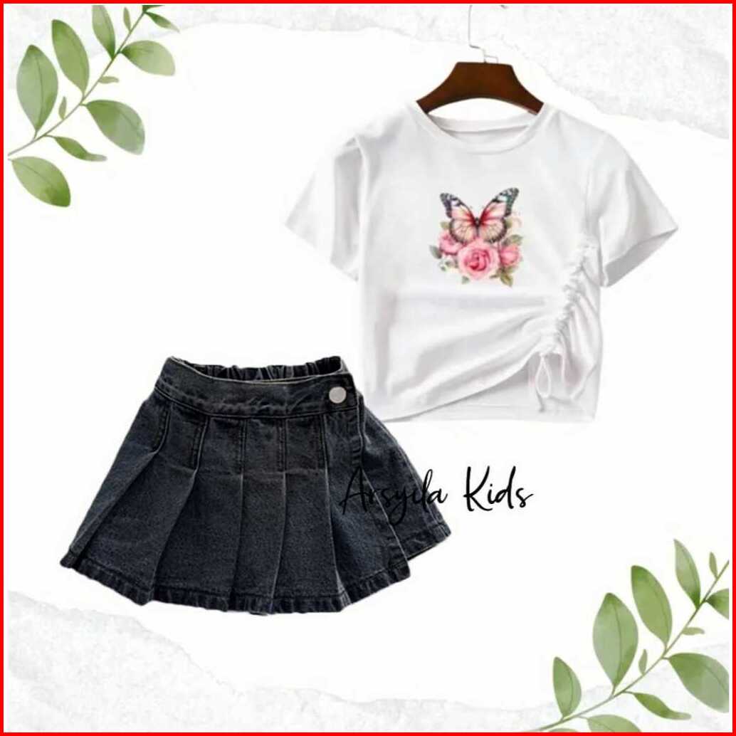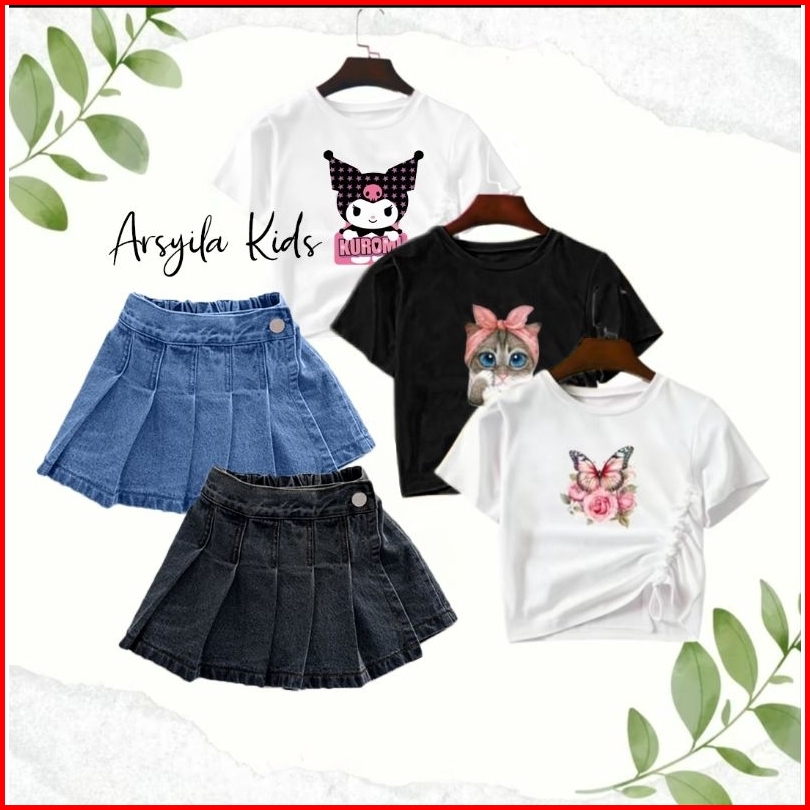 Arsyila Kids - Setelan Kaos Serut Anak Perempuan Rok Rempel Usia 1th Sampai 8th
