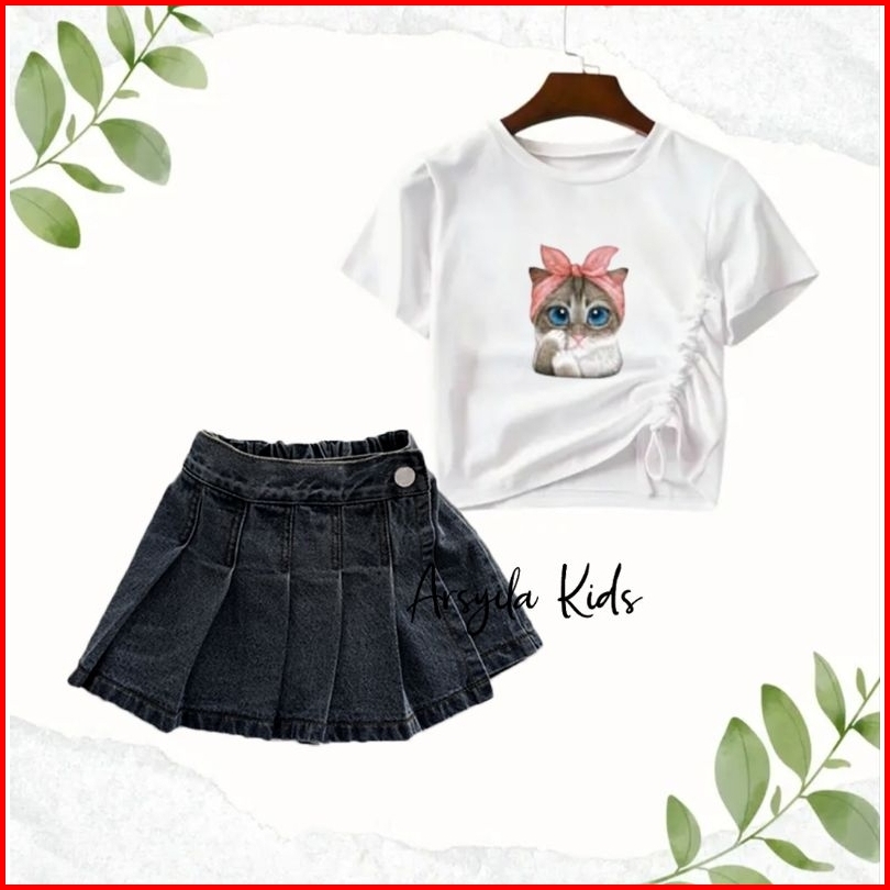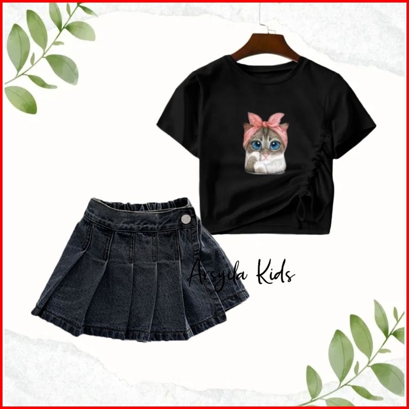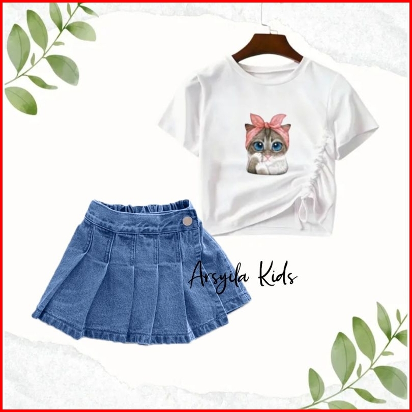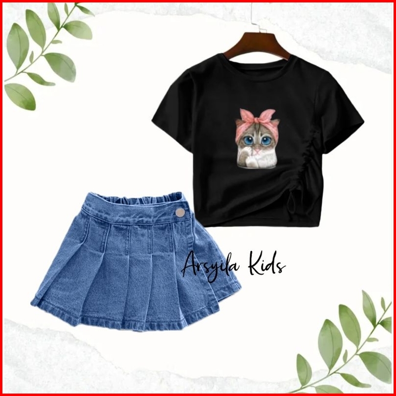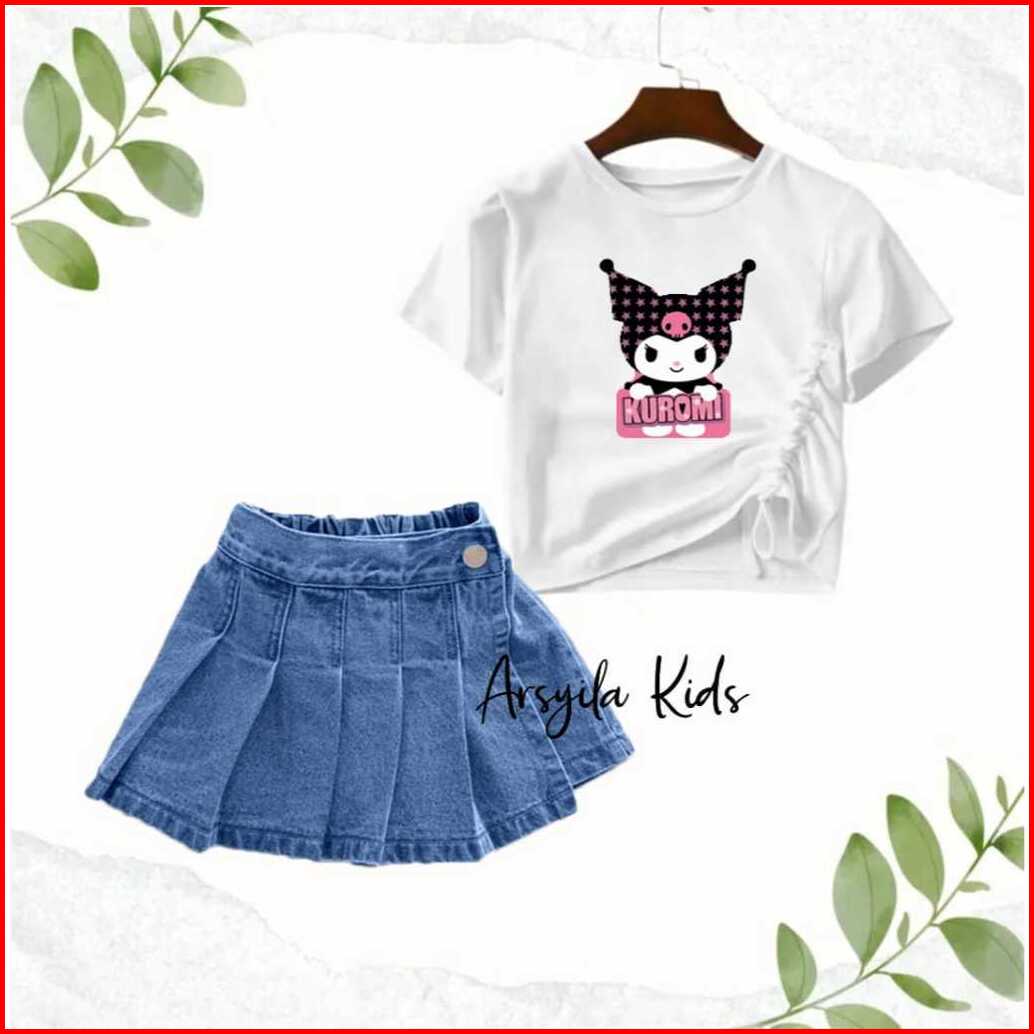 Arsyila Kids - Setelan Kaos Serut Anak Perempuan Rok Rempel Usia 1th Sampai 8th