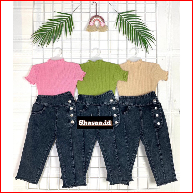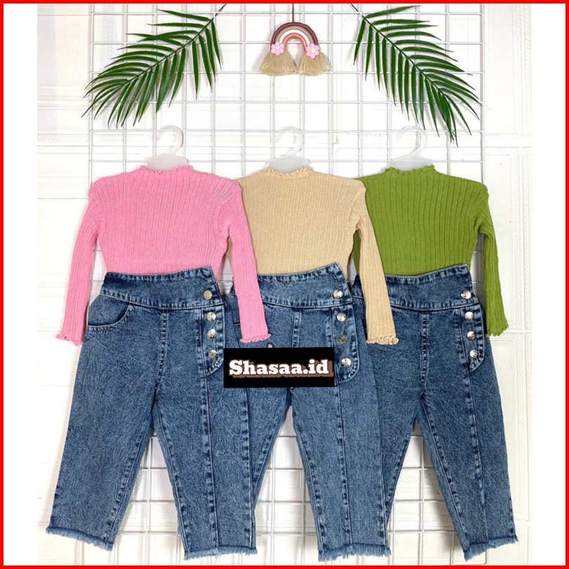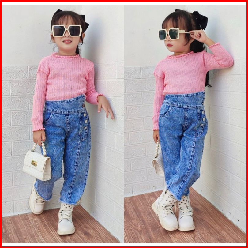 Setelan Celana Jeans Dan Baju Rajut Anak Perempuan Umur 1-6 Tahun Terlaris