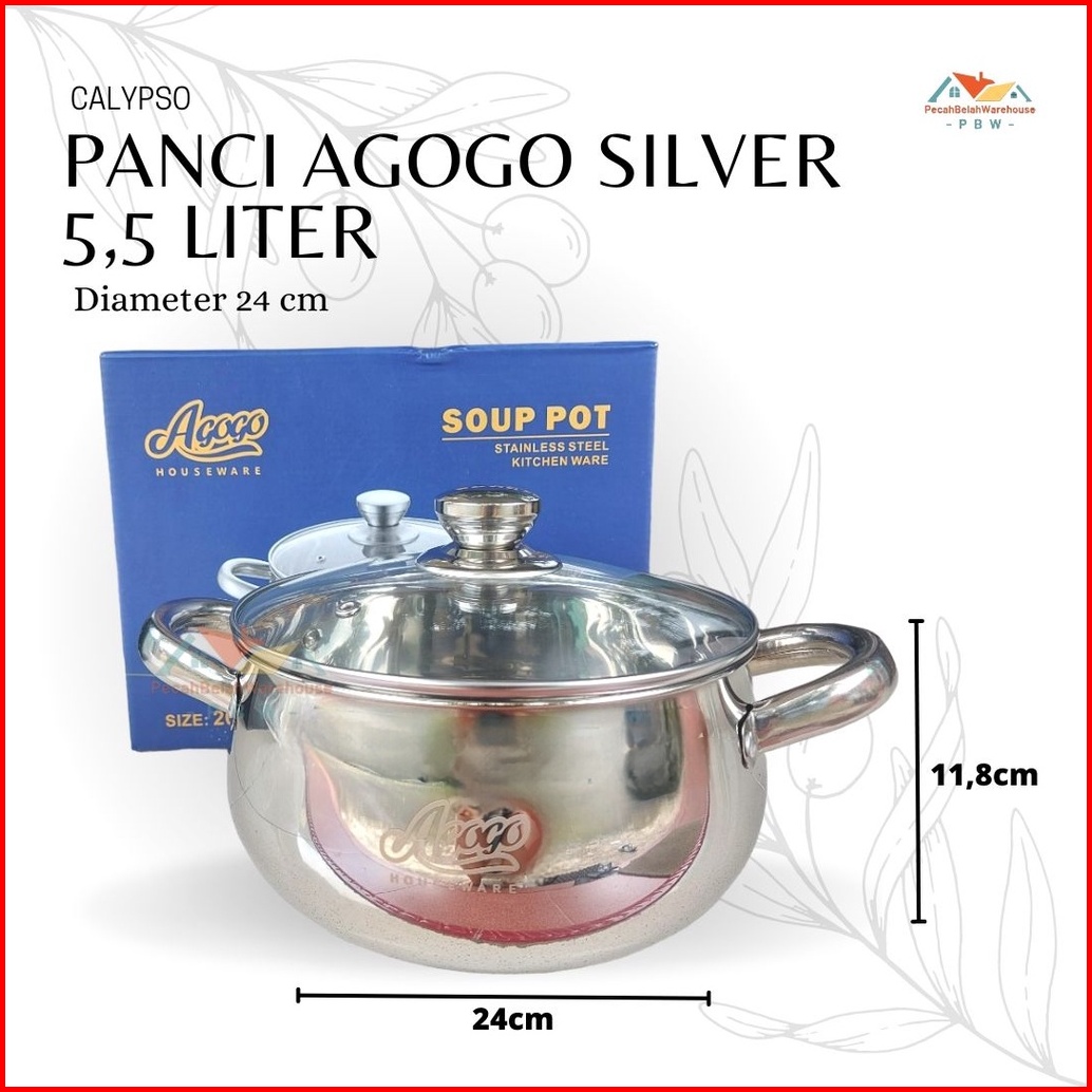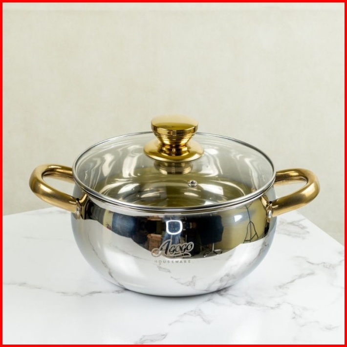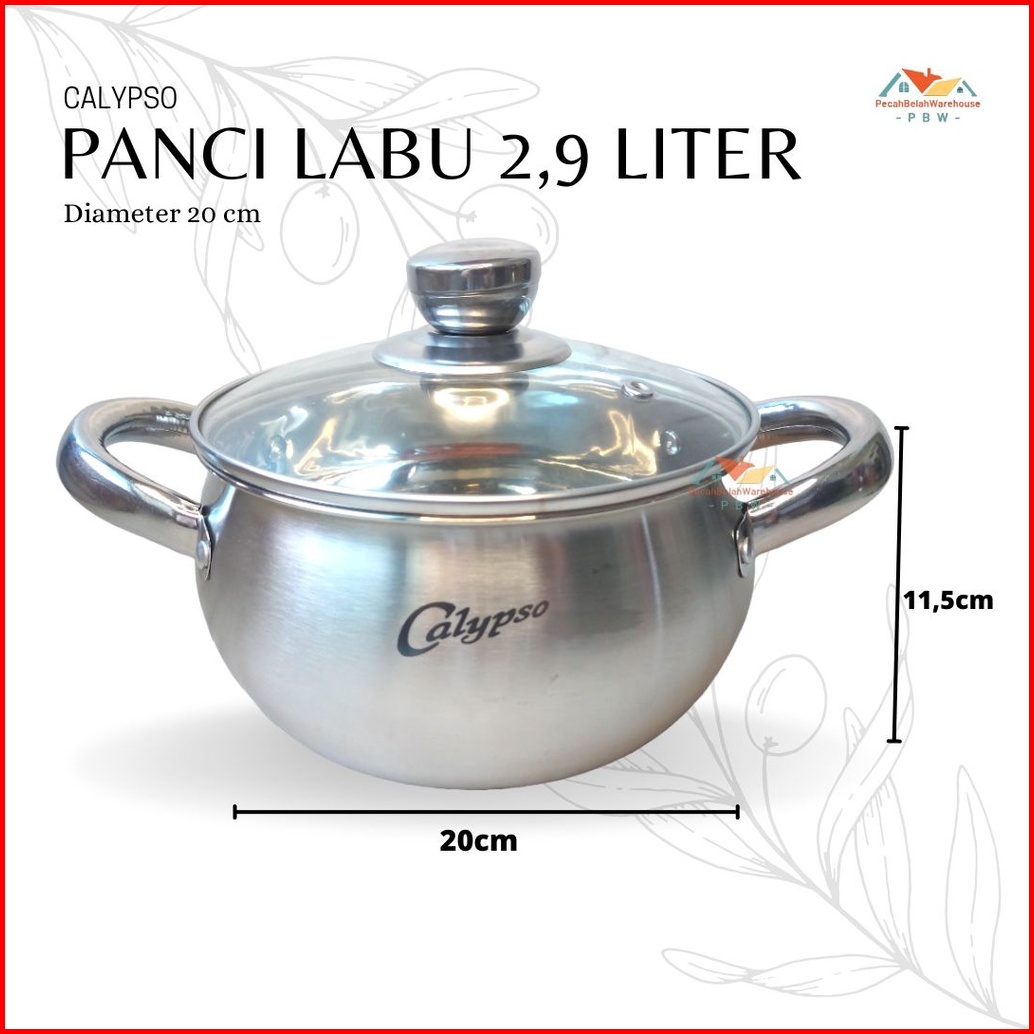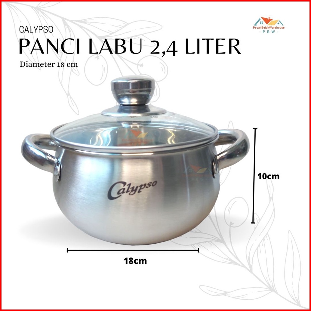 1pcs Panci Stainless Calypso Agogo 1 7l 2 4l 2 9l Panci Labu Stainless Tutup Kaca Panci Mpasi Panci Masak