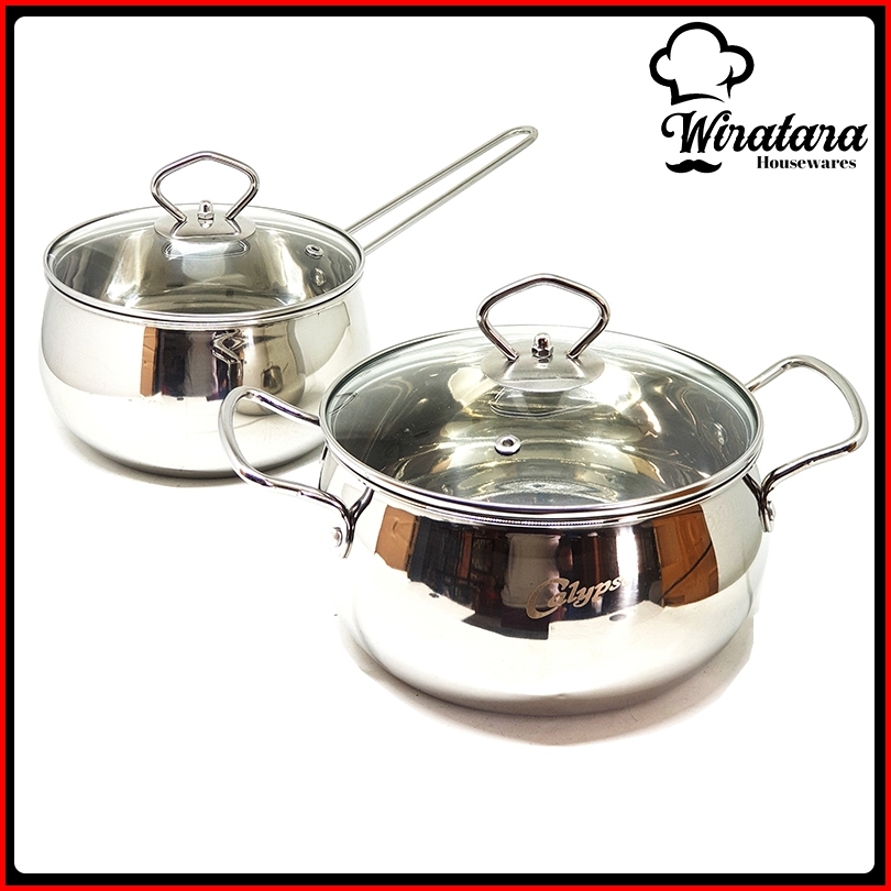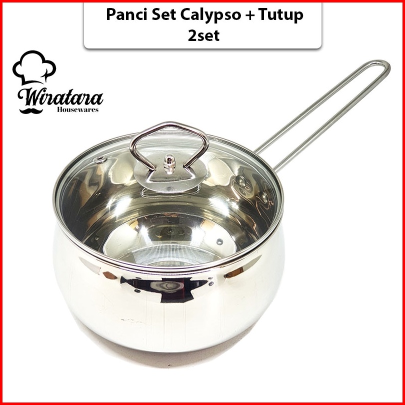 Calypso Panci Set 2pcs Stainless Tutup Kaca Sauce Pan Stenlis Casserole