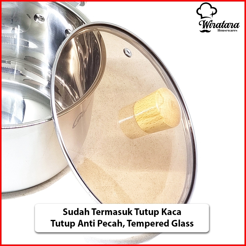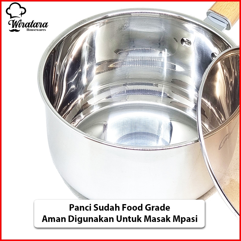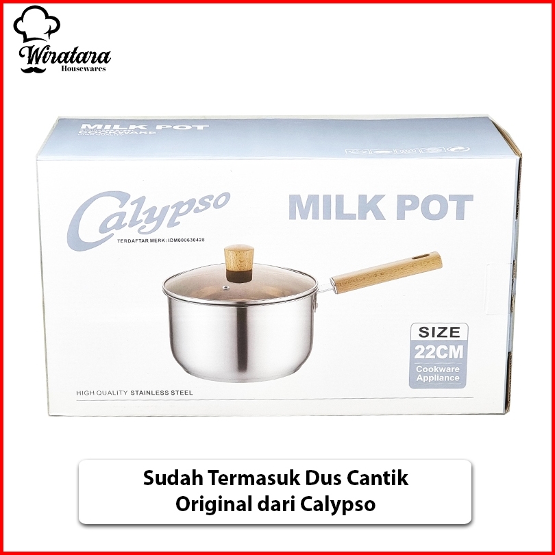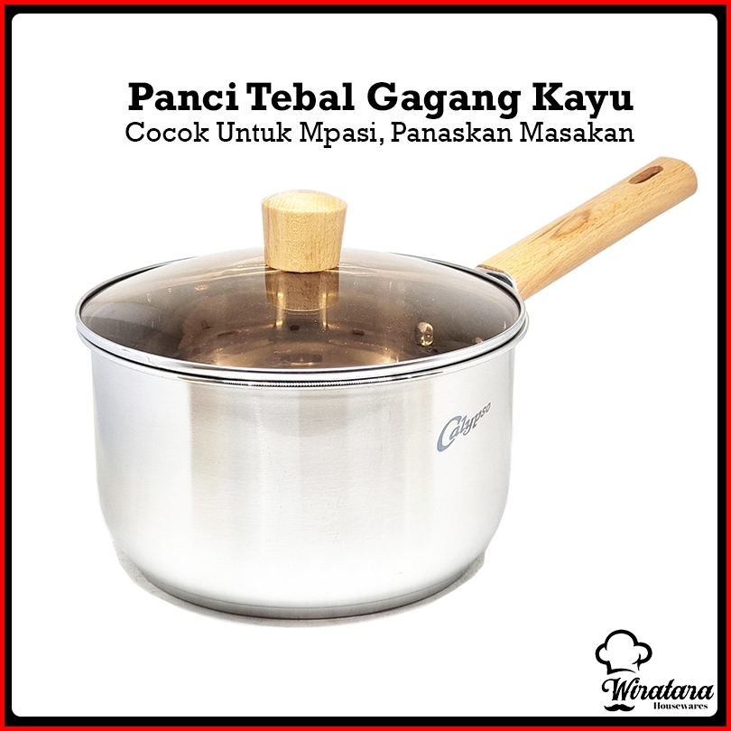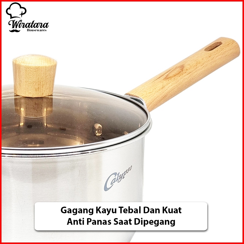 Calypso Panci Mpasi 4.5 Liter 22cm Stainless Sauce Pan Panci Susu Anti Lengket Tutup Kaca
