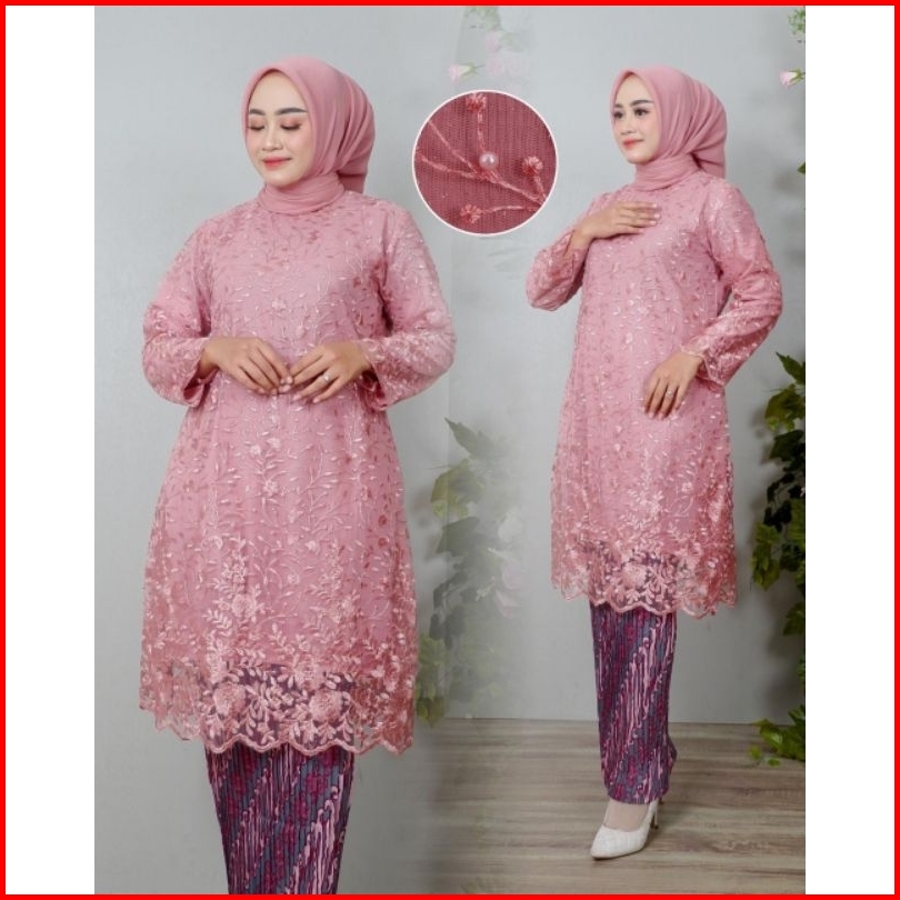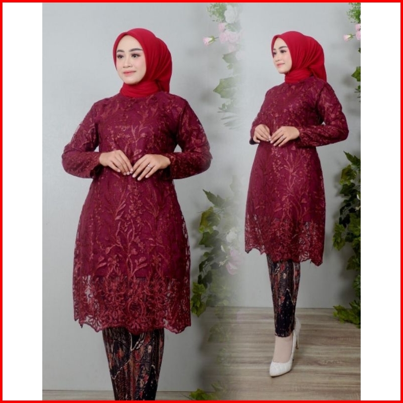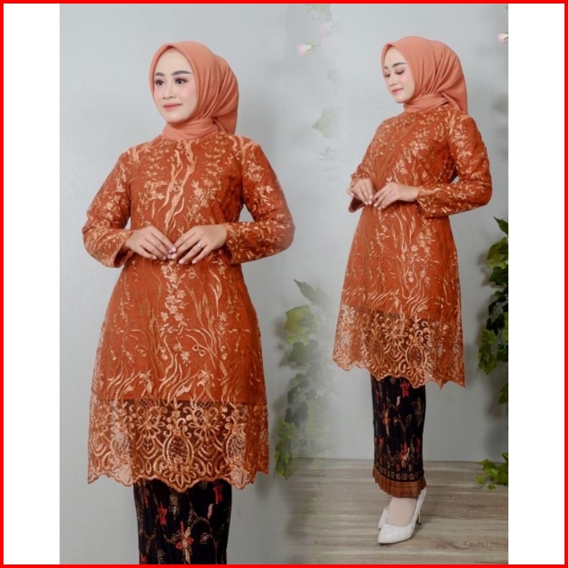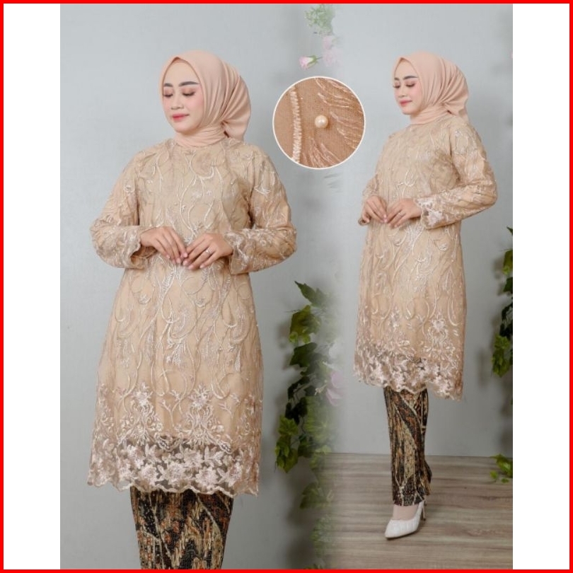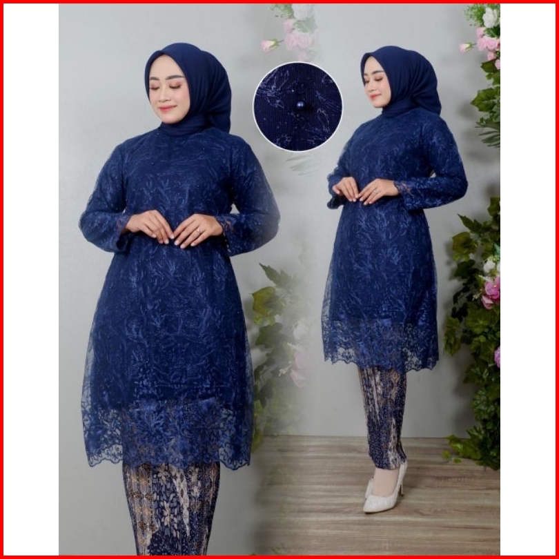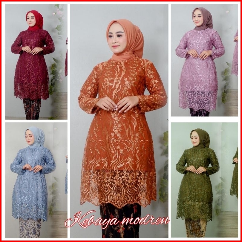 Stelan Kebaya Tunik Tulle Modern Warna Army Ukuran Jumbo Ld 130 Xxxl