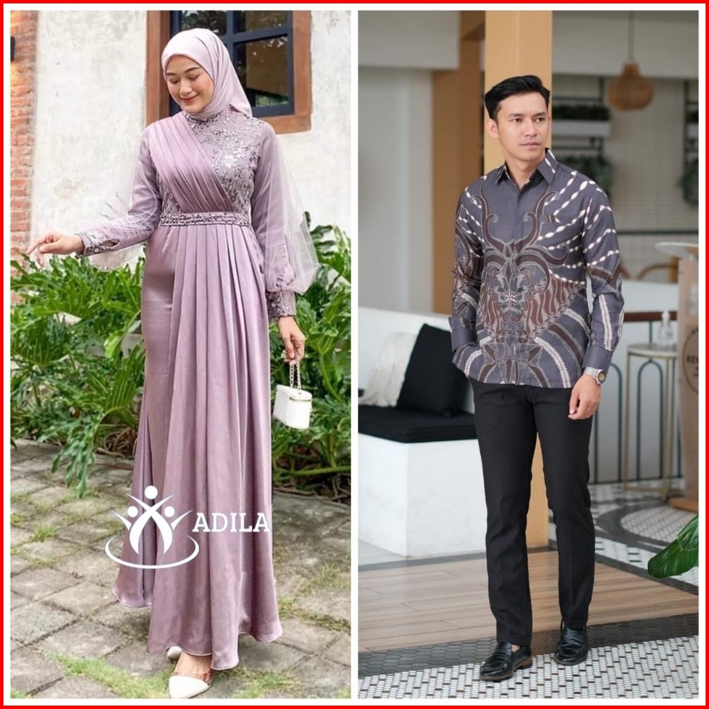 Batik Couple Adeva Dress Kebaya Lamaran Seragam Lebaran Modern Ootd
