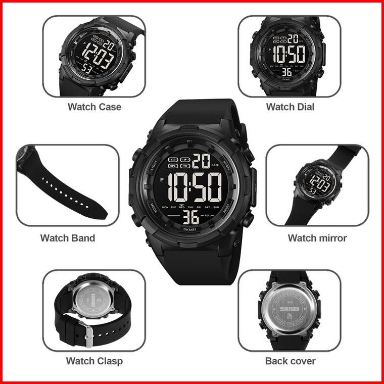 Skmei 1845 Jam Tangan Pria Digital Sport Watch Tali Rubber Anti Air 5 Bar Mgos