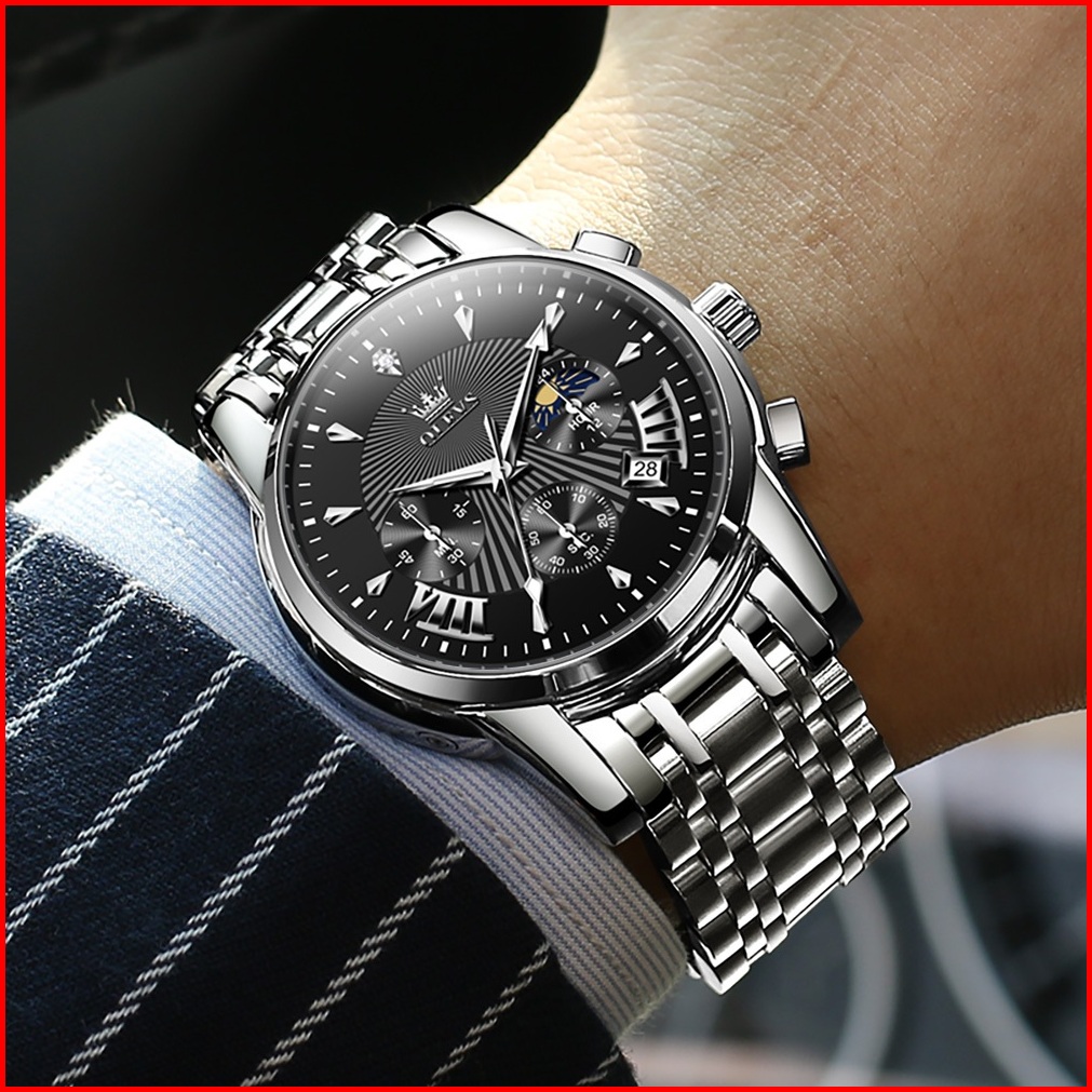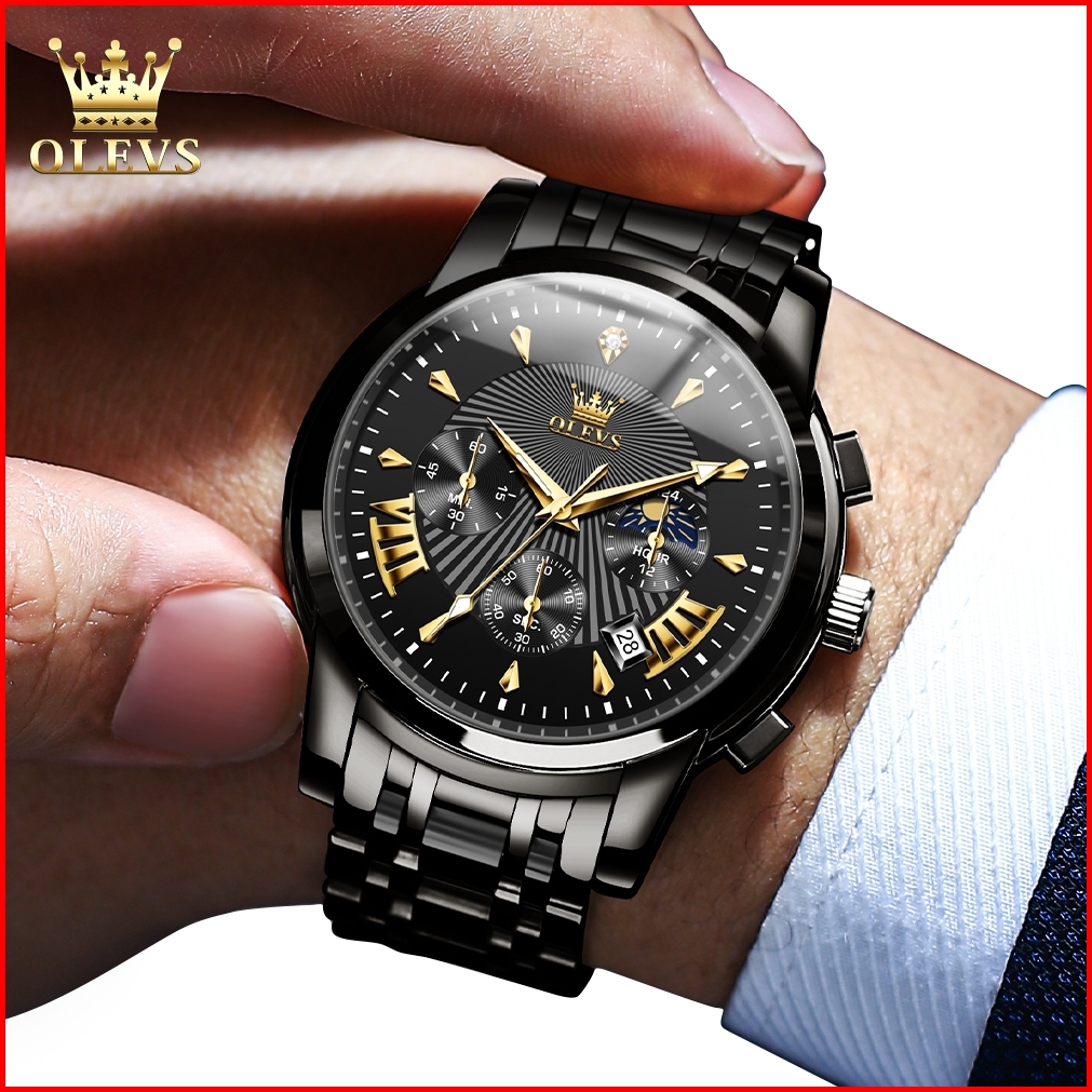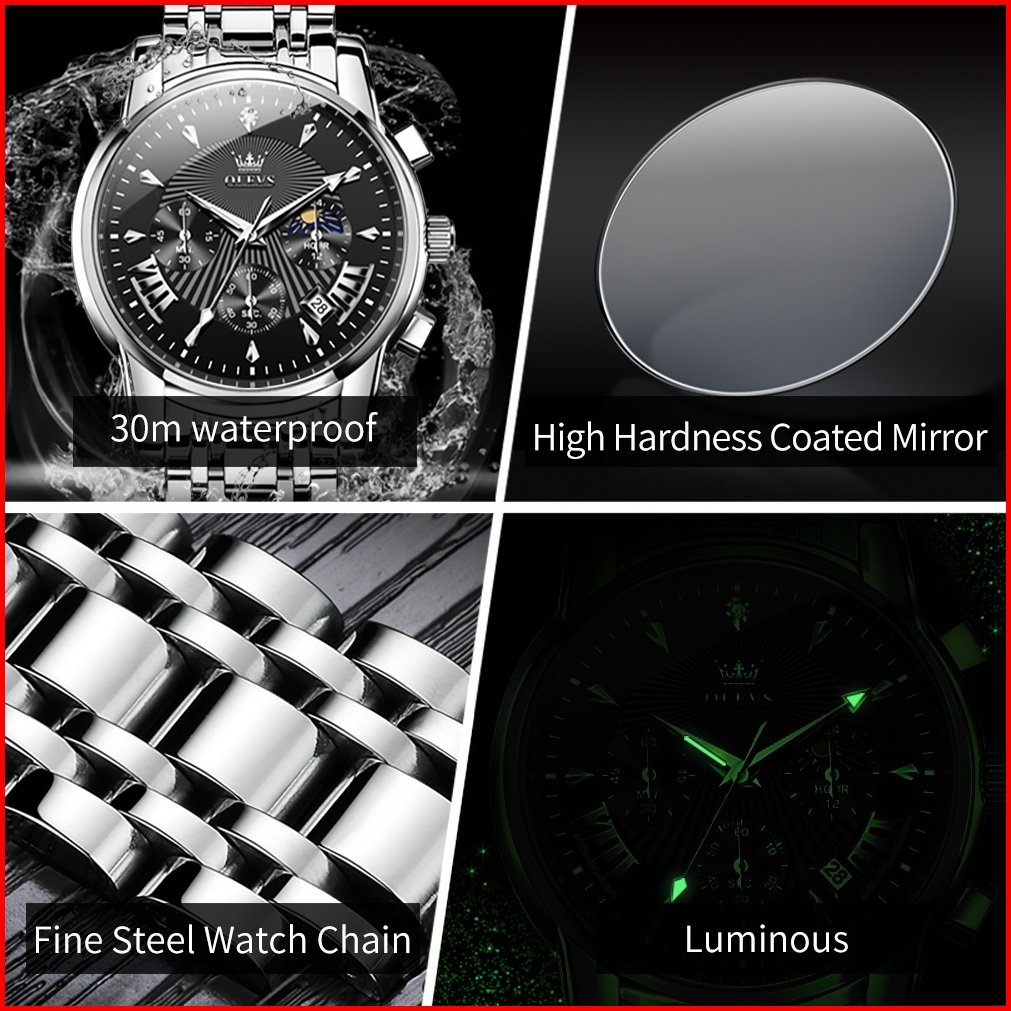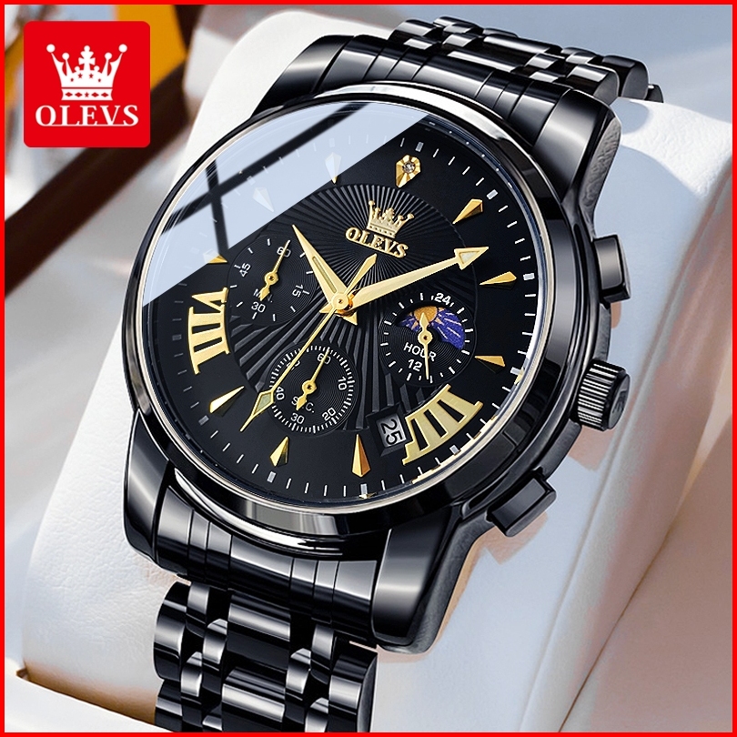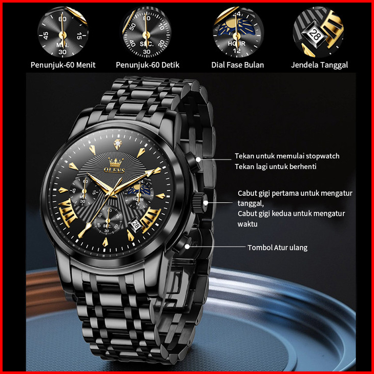 Olevs Jam Tangan Pria Anti Air Original Cowok Chronograph Terbaru Tahan Luxury Led Sport Analog Stainless Steel Watch Me