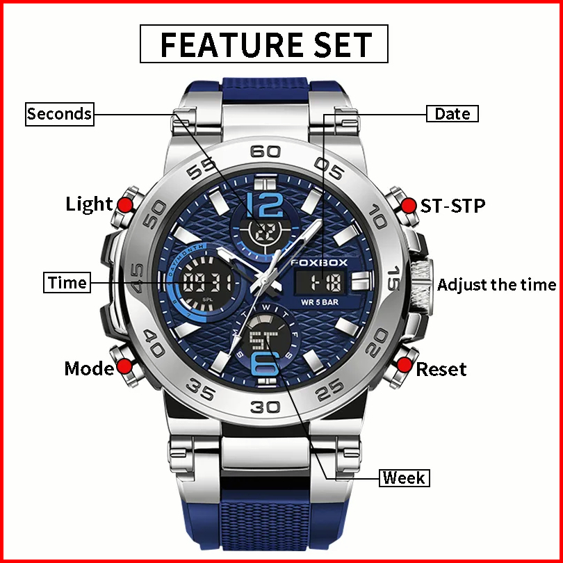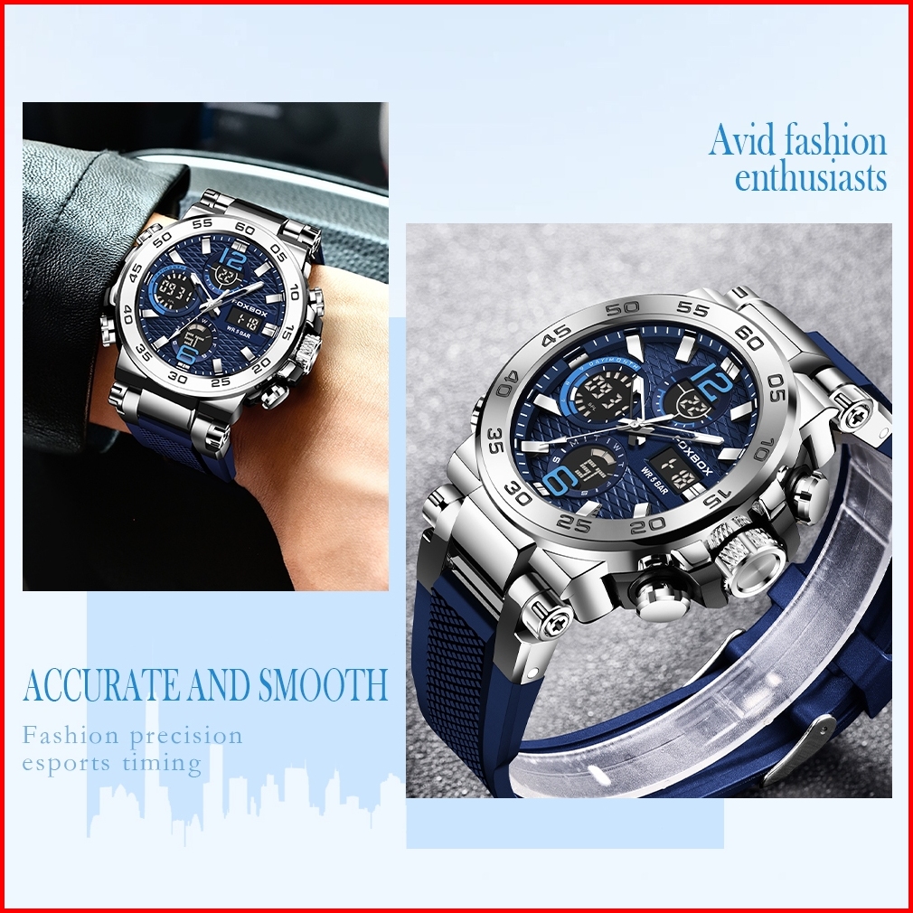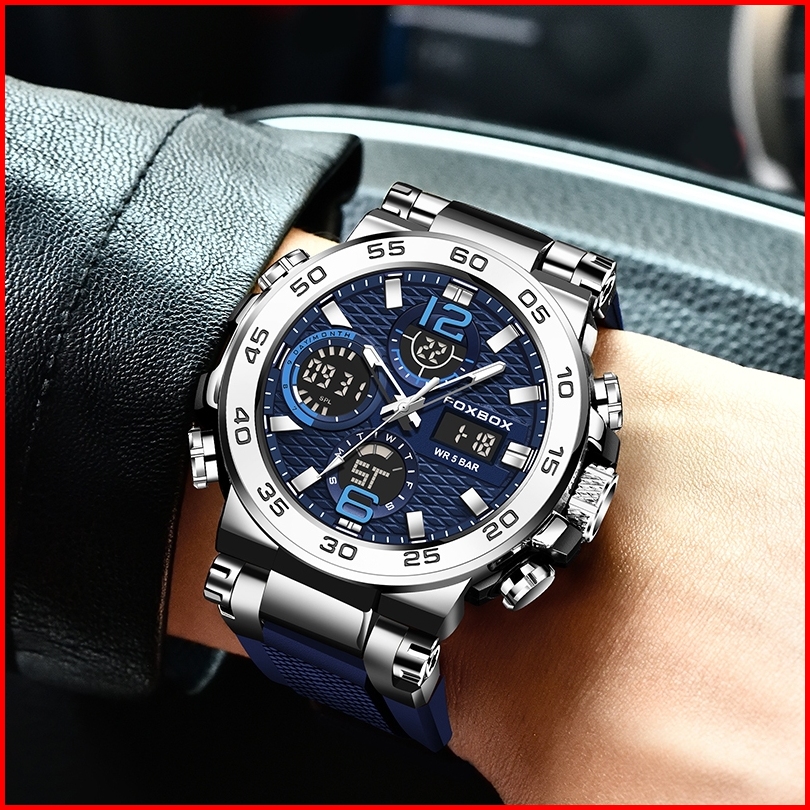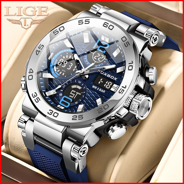 Lige Jam Tangan Digital Led Dual Display Asli Jam Tangan Olahraga Pria Tahan Air Jam Tangan Kuarsa Chronograph Watch